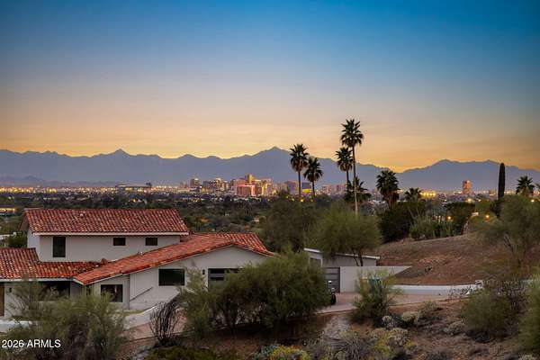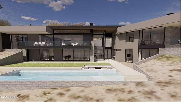 This hillside parcel on Piestewa Peak offers commanding, unobstructed views directly to Camelback Mountain, Praying Monk, and the downtown Phoenix skyline--one of the most recognizable view corridors in the Valley. Unlike raw hillside dirt, this offering includes fully approved architectural plans by Kendle Design Collaborative and an issued permit--allowing a buyer to bypass Hillside and Town of Paradise Valley review and save more than two years in timeline. The proposed modern estate is designed to step naturally with the terrain, maximizing sightlines, privacy, and seamless indoor-outdoor living. From the elevated pool deck and primary living spaces, Camelback becomes a framed focal point--an iconic backdrop that commands premium pricing and buyer demand.