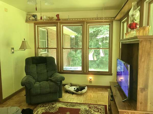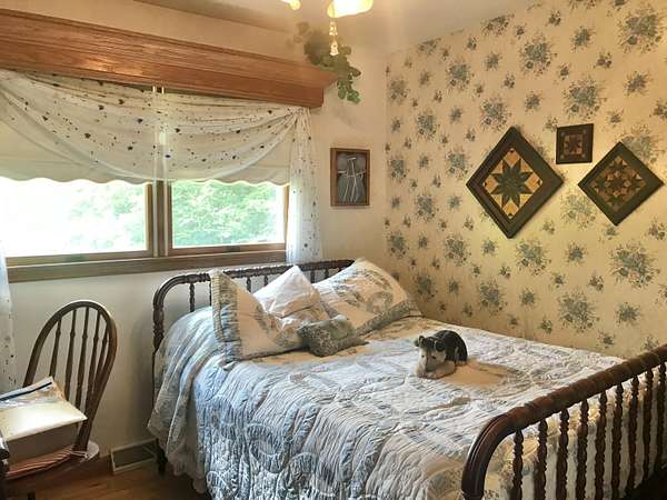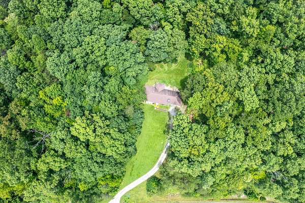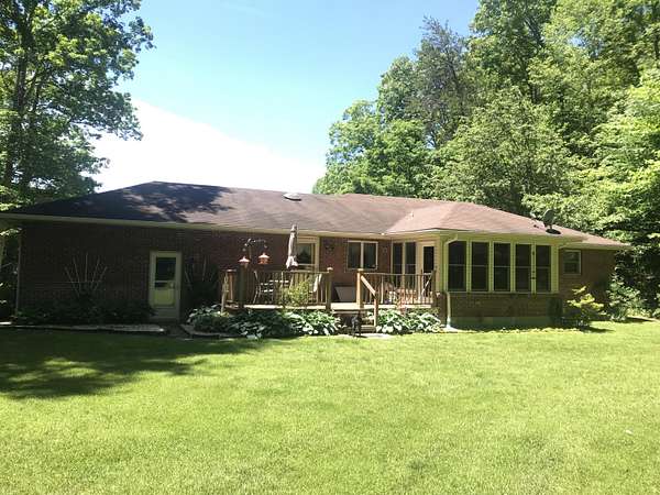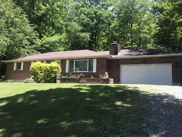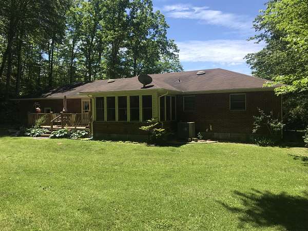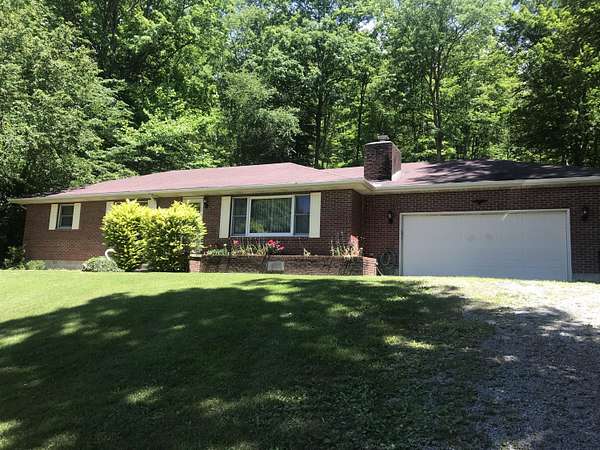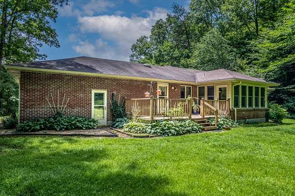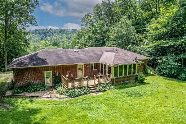 Custom-Built Brick Home on 40 Acres! Discover a custom built 3-bedroom, 2-bath brick home set on 40 scenic acres, offering privacy, functionality, and breathtaking natural surroundings. Thoughtfully designed with hardwood floors, solid wood doors, and rich oak trim. This home exudes quality craftsmanship throughout. The open kitchen and dining area, featuring a peninsula, creates a seamless flow for entertaining and everyday living. The master suite includes a step-in shower, while two additional guest bedrooms are located on the main level. A hall bath with double vanity provides convenience for family and guests. At the back of the home, a sunroom invites relaxation. The fully finished basement boasts a spacious family room with a fireplace, a laundry area, and additional rooms for storage, workspace or flexible living space. A stair chair lift for easy accessibility. Attached garage,. The property offers approximately 11 acres of level land across the road, ideal for crops, pasture, or hay production, with a creek marking the rear boundary. The wooded acreage surrounding the home provides excellent hunting opportunities. Relax on the back deck and enjoy the waterfalls.
