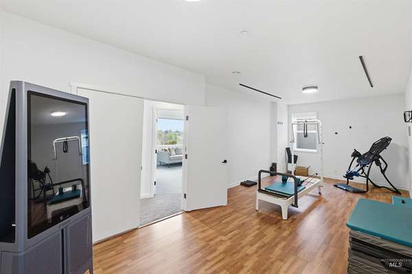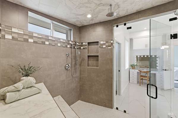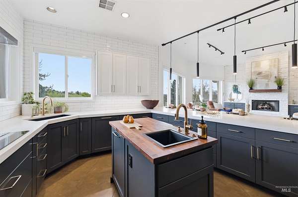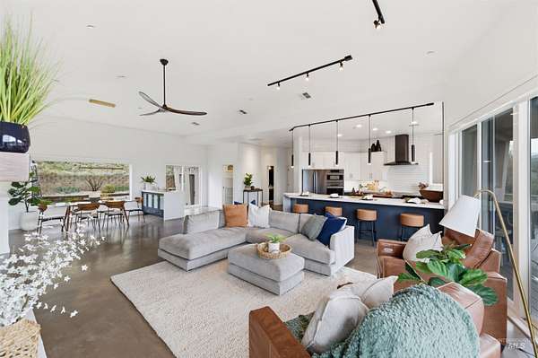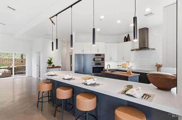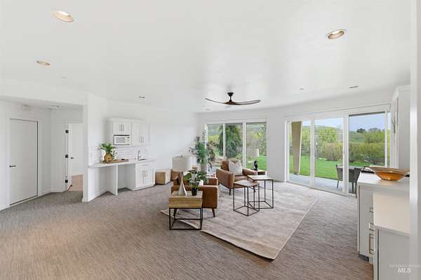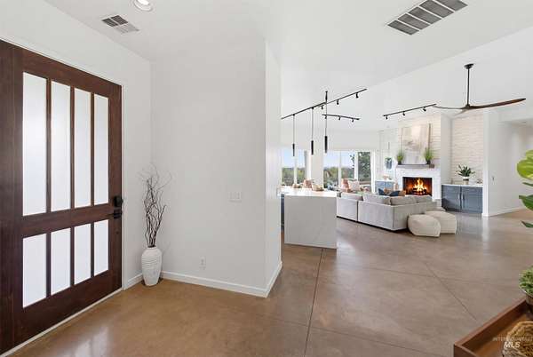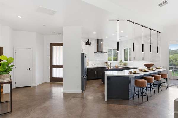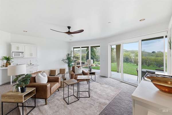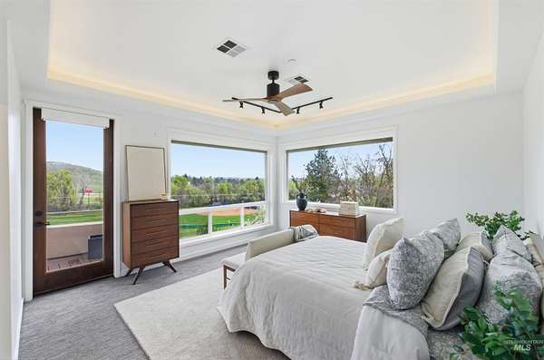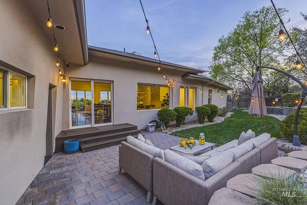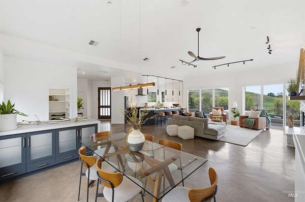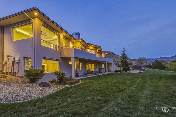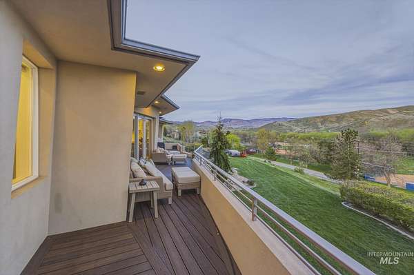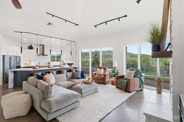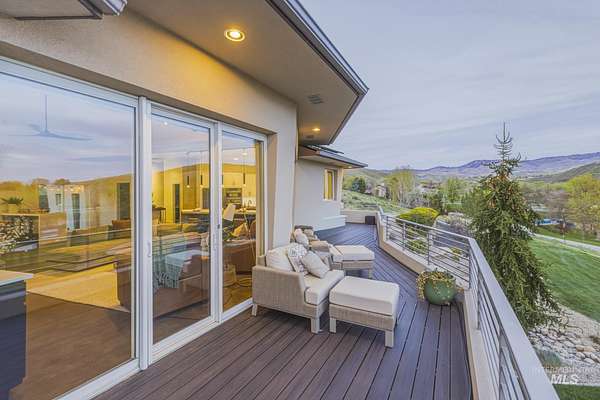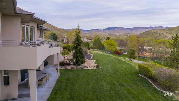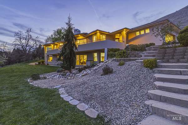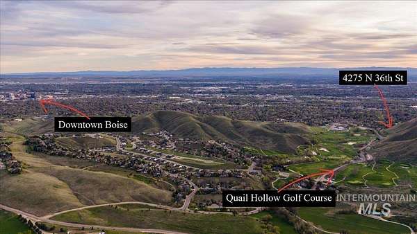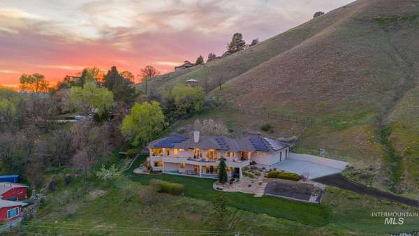 Perched gracefully on a hillside in Boise's foothills, this exceptional 4,700sqft steel-frame residence offers a rare blend of privacy, luxury, and breathtaking scenery-just 10 minutes from downtown. Overlooking Quail Hollow Golf Course, the property captures sweeping 360-degree views of the rolling foothills and the Boise skyline, truly unforgettable setting. Designed with multigenerational living in mind, the main level features a serene primary suite complete with expansive bay windows framing stunning city views, a spa-inspired bathroom, and a luxurious steam shower. Two additional bedrooms connected by a Jack-and-Jill bathroom provide both comfort and functionality. The heart of the home showcases a modern kitchen, living room, and dining area, all anchored by concrete floors with radiant heat for year-round comfort. The daylight basement expands the living space, offering an additional family room with a wet bar, kids' playroom, craft room, laundry room, home gym, and two more bedrooms. Set on 4.5 acres, this one-of-a-kind property delivers the perfect balance of seclusion and convenience-less than a mile from shopping, parks, and hiking trails. Outside, enjoy lush landscaping with mature fruit trees, garden spaces, and wide-open areas to relax or entertain. A spacious 4car garage, solar panels, and no HOA complete this irreplaceable foothills retreat.