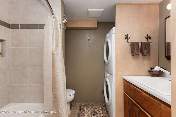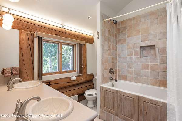 3 bedroom & 3 bathroom classic log home reminiscent of the quintessential Colorado mountain lifestyle. Escape the hustle and bustle at this tranquil property, shaded by aspen trees and at the end of Sopris Mountain Ranch Road. A large deck and grassy yard provide ample opportunities to enjoy the outdoors and give easy access to explore the extensive trail system in Sopris Mountain Ranch and adjacent White River National Forest. The main level has a kitchen, dining and family room with numerous windows to take in the surrounding countryside. Upstairs, vaulted ceilings fill the primary suite and guest bedroom with abundant natural light and mountain views. The lower level contains a third bedroom and bathroom with washer, dryer and outdoor access. Simple rural living and privacy yet 15 only minutes to Whole Foods.