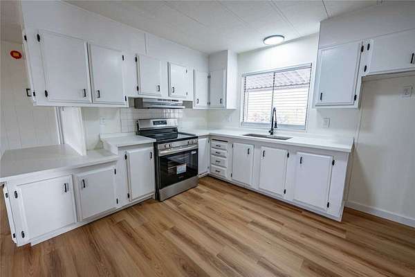 This updated home is on a corner lot. New interior and exterior paint, refinished white kitchen cabinets, new quartz countertops, new SS stove and hood, SS double oven, new kitchen sink and faucet, new flooring and new baseboards t/o home, new bathroom vanities. has covered porches front and back, fully fenced with chain link around the front and field fence in the back. Huge shop and garage with a double carport on one side. Private but not totally secluded.