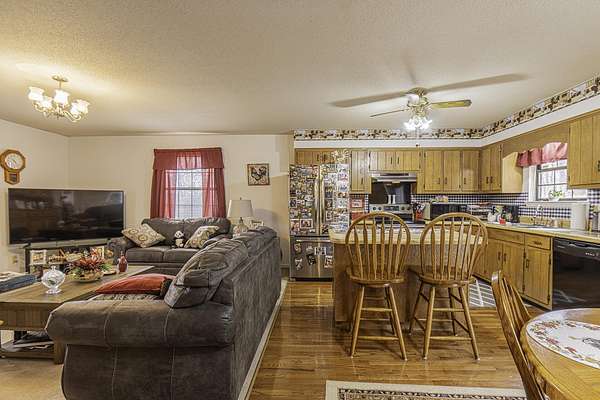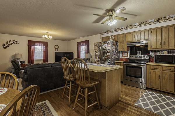 - Ceiling Fan(s), Eat-In Kitchen, Open Floorplan, Tub/Shower Combo