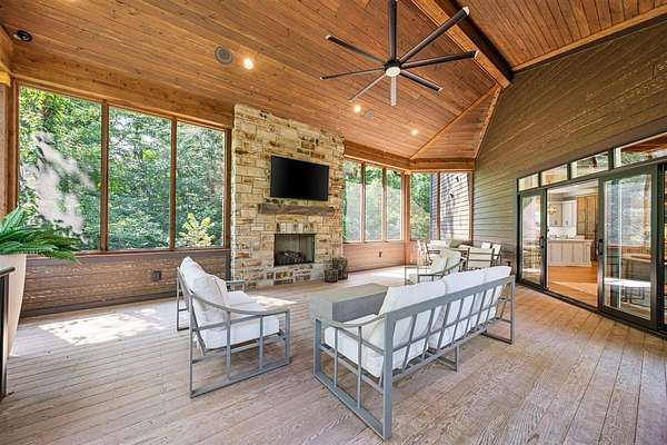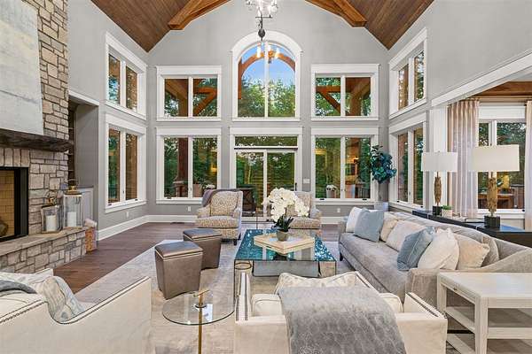 Award-Winning Luxury Lake Estate on 3.5 Acres - 7,700 Sq Ft | 5 Beds + Custom Bunk Room | Private Dock | Fully Furnished Winner of three Parade of Homes awards, including Best Overall Home, this exceptional 7,700 sq ft estate offers the pinnacle of lakeside living. Nestled on 3.5 acres of private, wooded lakefront property in a gated neighborhood, the home combines unmatched seclusion with refined sophistication. Designed and curated with meticulous attention to detail, the interior features 5 spacious bedrooms plus a custom bunk room, high-end furnishings (included), elegant finishes, and timeless architectural elements that blend comfort with luxury. The living room impresses with soaring 16-foot wood beam ceilings, a stunning stone fireplace, and floor-to-ceiling windows framing panoramic lake views--bringing the outdoors in year-round. At the heart of the home, the chef's kitchen boasts top-of-the-line appliances, a generous walk-in pantry, and an oversized island ideal for both everyday living and entertaining. The walk-out basement offers a complete entertainment space with a game room, custom bar, and open areas perfect for gatherings, movie nights, or casual relaxation. Outdoor living is equally impressive, with over 2,000 sq ft of covered patios and screened-in porches--ideal for morning coffee, lakeside cookouts, or evenings by the fire. The property's private dock, set in a peaceful cove, is perfect for boating, fishing, swimming, or soaking in the sun. A 24-foot pontoon boat and jet ski are available with the sale, allowing new owners to enjoy the lake lifestyle immediately. Conveniently located, this property is approximately 65 miles from Nashville, TN; 93 miles from Owensboro, KY; 120 miles from Louisville, KY; 163 miles from Lexington, KY; 225 miles from Cincinnati, OH; and 290 miles from Atlanta, GA--making it an ideal retreat with easy access to major cities. Situated on one of the most desirable parcels of Barren River Lake, this residence offers a rare combination of privacy, luxury, and natural beauty--truly one of the finest homes on the market today.