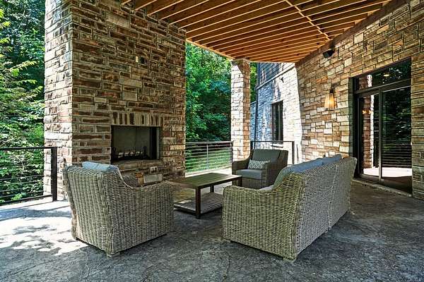 - Balcony, Concrete Walks, Court Yard, Covered Deck, Covered Front Porch, Covered Patio, Enclosed Patio, Enclosed Porch, Exterior Lights, Garden Area, Landscaping, Mature Trees, Outdoor Lighting, Screened Porch, Stamped Concrete Walks, Trees