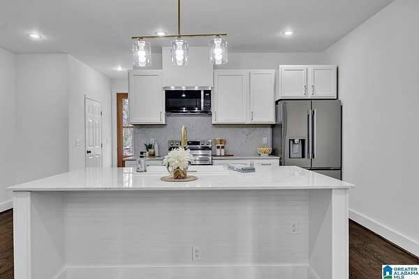 Brand new construction on 2.8 acres with a pond, perfectly located just minutes from Gardendale’s shops and restaurants and less than 15 minutes to downtown Birmingham. This 3BR/2.5BA home offers an open kitchen, living, and dining layout filled with natural light and anchored by a stunning two-story floor-to-ceiling marble tile fireplace. The kitchen features a large center island with bar seating, stainless steel appliances, quartz countertops, and a quartz backsplash. Two bedrooms are located on the main level with a Jack-and-Jill bath offering a double vanity and tiled tub/shower combo. Upstairs you’ll find the private owner’s retreat complete with an interior balcony overlooking the living space, exterior covered porch, walk-in closet, and a spacious spa-like bath with soaking tub, large walk-in shower, double vanity, and marble tile flooring with a statement feature wall. A rare blend of modern design, peaceful acreage, and unbeatable convenience!