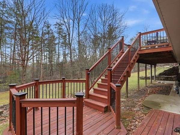 Need space? Here is a rare find. Situated on 10 acres in a private country setting just minutes to town, this 3-bedroom, 3-bath home offers room to spread out inside and out. The large dining area and kitchen feature granite countertops, tons of cabinet space, and a bar with extra seating. Fresh paint, new flooring, and updated bathrooms add to the appeal. The heated sunroom gives you year-round extra living space, while the finished walk-out basement with patio offers even more room with a family room, bathroom, laundry, MEGA storage, and a bonus room that could be a 4th bedroom, office, or man cave. Screened-in porch, deck, and fire pit make relaxing or entertaining easy. Beautiful landscaping, a separate private workshop, newer roof, new windows, and radon mitigation already done. Well cared for inside and out. Split A/C units with a heat pump help keep things efficient, plus low property taxes and extra parking!
