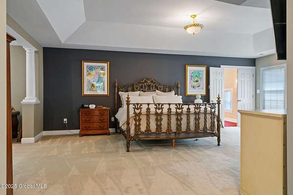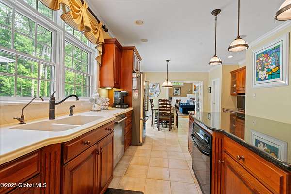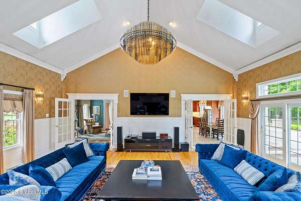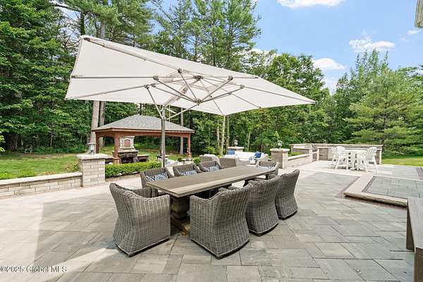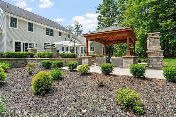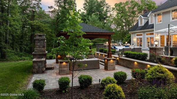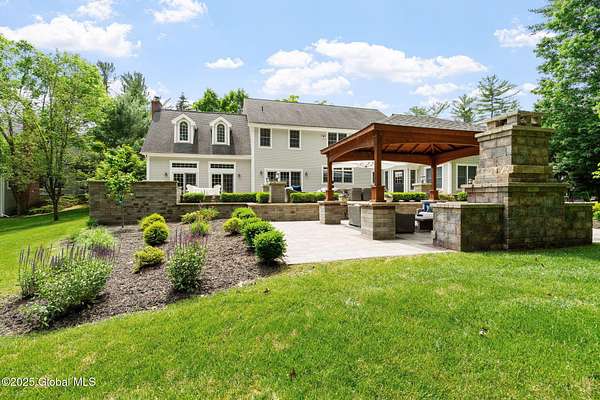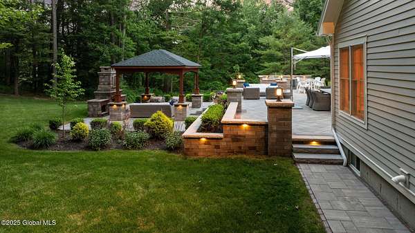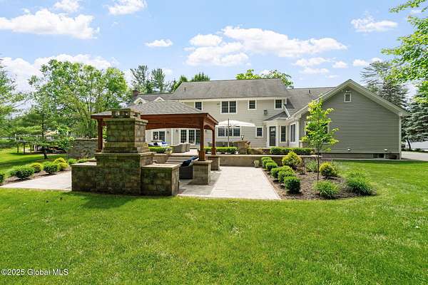 Stunning 4,300+ SF custom Colonial set on 2.9 private acres in award-winning Guilderland schools with another 1200+ SF of finished basement with home theatre, full bathroom, and wet bar. This exceptional home features a beautifully remodeled kitchen perfect for entertaining, along with both first and second floor master suites-ideal for in-law living or convenient first-floor primary use. The backyard is a true showstopper with over $200K invested in a resort-style patio complete with a custom outdoor kitchen, built-in grill, stone fireplace, and expansive seating areas. Thoughtfully designed with luxury, flexibility, and lifestyle in mind-this is a rare opportunity not to be missed!. 3D tour attached. Showings start Saturday 6/21
