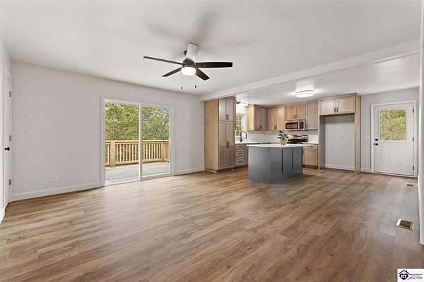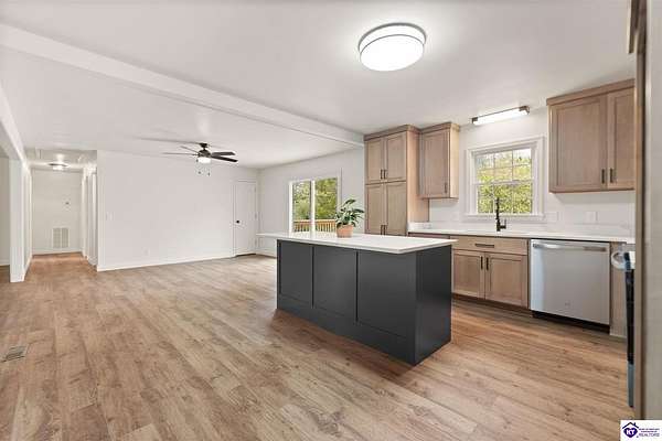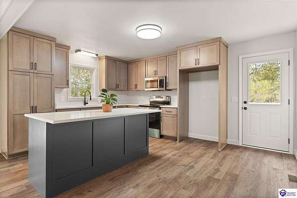 Newly Renovated Brick Ranch with Acreage, Barn, and Pond Step inside this beautifully renovated brick ranch featuring a walkout basement with a one-car garage. Every detail has been updated for comfort and style. New windows, HVAC, hot water heater, flooring, exterior doors, and fresh paint throughout. The custom kitchen and bath vanity were designed and crafted locally by Classic Kitchens, adding a touch of quality craftsmanship you'll love. The home is all electric with a roof only 3 years old, making it truly move-in ready. Outside, you'll find a large barn, detached building, and a peaceful pond, offering endless opportunities for farming, hobbies, or simply enjoying nature. With no restrictions this farm is for anyone dreaming of country living or considering future development potential as the land could easily be divided into additional home sites. Perfectly located between Campbellsville and Hodgenville, just off Hwy 210, this property invites you to let your dreams run wild.