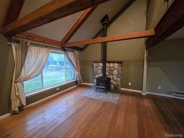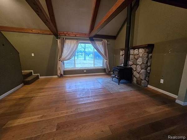 Est $1,175/moGreat opportunity on this three bedroom home on 10 acres. Home needs some work, but priced to compensate. The main floor has an oak kitchen with plenty of cabinets and counter space. Large living room with tall ceilings and a wood burning stove. One bedroom on the main floor and two upstairs. There is a pole barn w/lean too and a shed. The land is a mixture of pasture and woods.