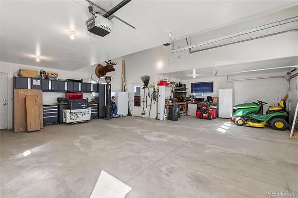 The oversized three-car garage offers exceptional functionality with space for an RV, trailer, or boat, plus a dedicated storage room for equipment and hobbies.