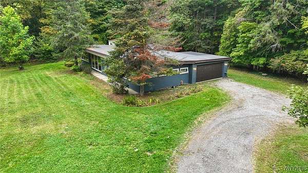 4282 Two Rod Road in Marilla is the perfect blend of privacy and convenience. This secluded ranch offers everyday comfort, a place to unwind under starry skies, and the charm of country living just minutes from the village of East Aurora and about 25/30 minutes to the city of Buffalo. With design elements reminiscent of Frank Lloyd Wright's timeless style, this home is truly a must-see.