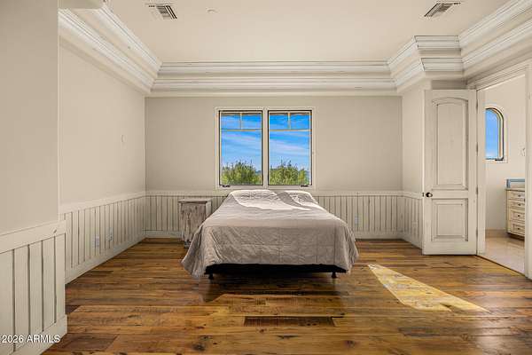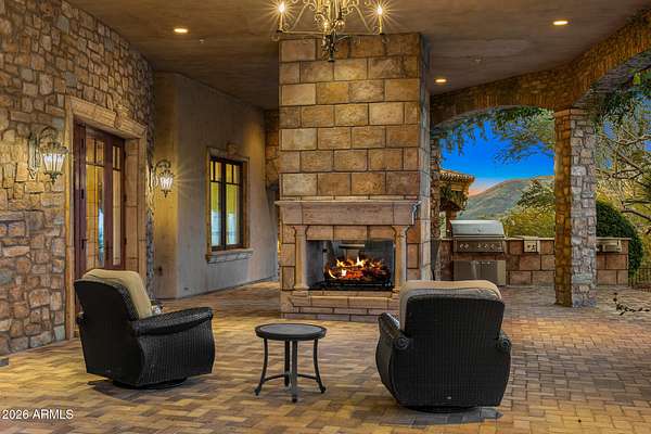 Unparalleled refined elegance tucked away for the ultimate privacy - a true architectural statement set on 54 pristine saguaro studded acres. This second to none grand custom estate pairs exquisite design with timeless craftsmanship featuring reclaimed wood floors that flow throughout the home. Once upstairs, you will find four rooms, all en-suite including a stunning primary bedroom with private balcony, fireplace & sitting room. Down the show-stopping staircase you will find an oversized game room, wine cellar, theater, guest room, steam room & second office. The serene backyard is surrounded by lush orchards, sparkling pool & cabana, slide, waterfall - all framing the panoramic views. Nothing compares to the privacy or beauty in this remarkable location both for entertaining & retreat.