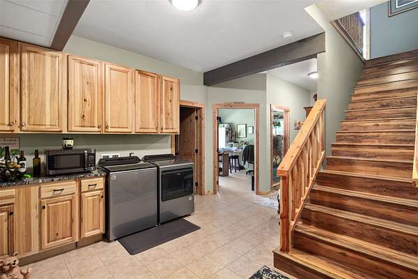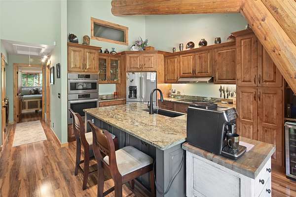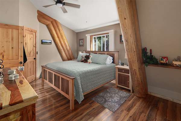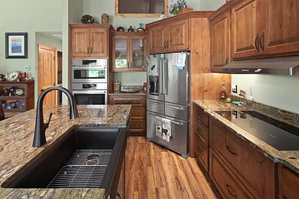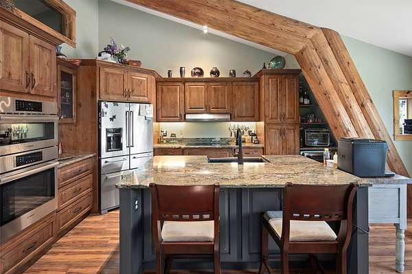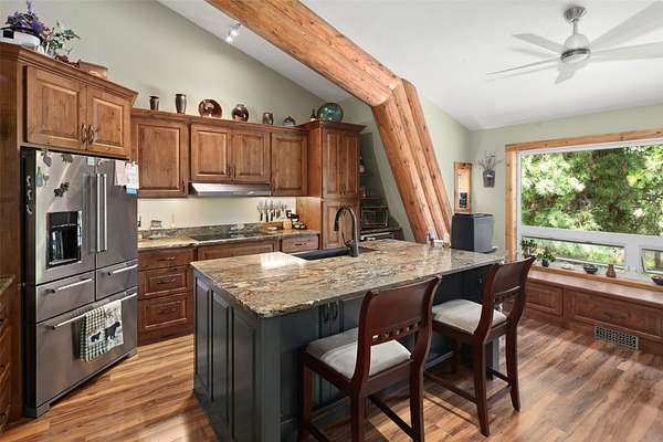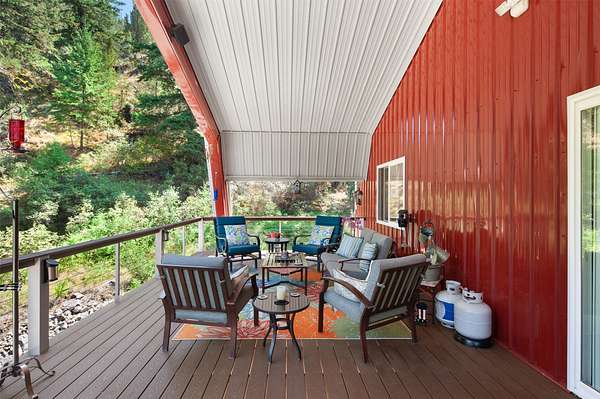 Immaculate and fully updated home on 5.51 acres bordering State land in Big Arm! This 3 bed, 3 bath residence features separate living areas on each level, an office, and laundry rooms up and down. Enjoy high-end finishes throughout including LVP flooring, quartz countertops, alder cabinets, and stainless steel appliances-plus a custom bar and safe room. The spacious covered deck (34' x 15') is wired for water, sound, and lighting, perfect for entertaining. A massive 42' x 60' heated and insulated shop offers 24' ceilings, sound system, wood stove, electric heater, and more. Additional features: greenhouse (plumbed), 10' x 20' finished shed, sprinkler system, and a security system. Appliances, dual washers/dryers, Melie induction cooktop, and wine fridge included. Scenic and private, yet only minutes to Flathead Lake. Don't miss this rare Montana property!