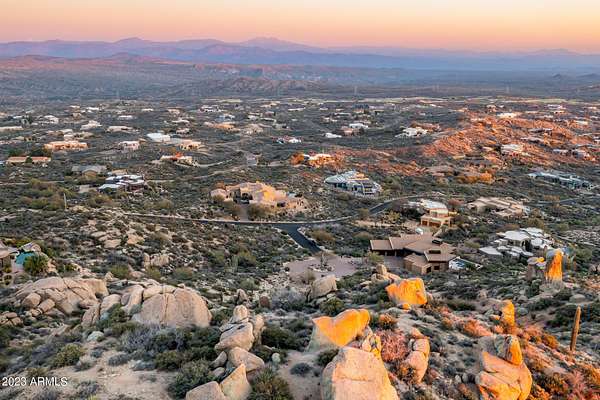 Est $10,728/moViews! Views! Views! This 70,516 S.Q F.T home site, with elevation of 3,700 and building envelope of 20,913, offers panoramic views from North East to South of the entire Mazatzal, Superstition and McDowell mountain range. The South North views are dramatic with rock out cropping and the well known landmark Apache Peak. Enjoy incredible sunrises in the morning and twinkling lights from the valley at night.