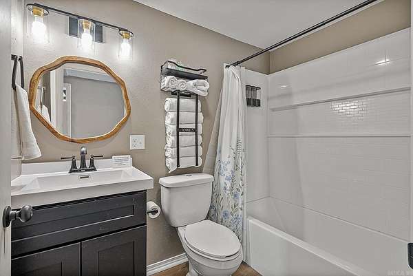 Lake area retreat! Fully renovated, furnished and Airbnb ready! Completely renovated and thoughtfully designed, this property is currently set up for three potential Airbnb units perfect for short-term rentals, multi-family living, or a private lake retreat near beautiful Norfork Lake. The fully furnished main home offers 2,056 sq ft with three bedrooms and two full baths on the main level, plus a finished Walk out basement that includes two additional bedrooms, one full bath, and a complete kitchen with stove, sink, and refrigerator. Washer and dryer hookups are available on both levels. The separate 600 sq ft guest house is also fully furnished and features one bedroom, one full bath, a full kitchen, and a private back deck. Recent updates include a new electrical panel, new plumbing throughout, and a new 80-gallon water heater. The property sits on two acres with a small storage building and shedperfect for lake gear or extra storage. Located just 1.5 miles to 101 Marina and 5.7 miles to Fout Boat Dock, this home offers quick access to Norfork Lake for boating, fishing, and relaxation. Completely furnished and move-in or rental readylive in one, rent the others, or enjoy it all