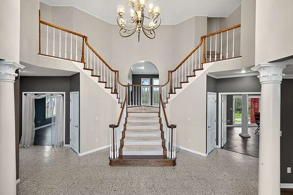 Welcome to 4285 Highway 127 S--an exceptional 5-bedroom, 3 bath brick home offering 3,856 sq ft of comfortable living space and an impressive list of features, all set on 24.5 beautiful acres in Crossville, TN. Enter through an impressive foyer featuring a chandelier and a grand curved staircase with a dual-flight design, setting the tone for the craftsmanship and elegance found throughout the home. The main level also features an open floor plan with LVP flooring in the living room, dining room, kitchen, and bathrooms, providing both style and durability. The main home includes a 3-car attached garage, while the property also boasts a 3-car detached garage with living quarters in need of renovation which could be ideal for guests, extended family, or rental potential. Outdoors, the possibilities are endless with two serene ponds, an equipment shed, and a livestock barn, making this property perfect for hobby farming, horses, or anyone seeking a self-sustaining lifestyle. With its generous acreage, functional outbuildings, and expansive home, this property offers a rare blend of privacy, space, and versatility--just minutes from the conveniences of Crossville.