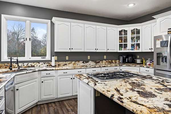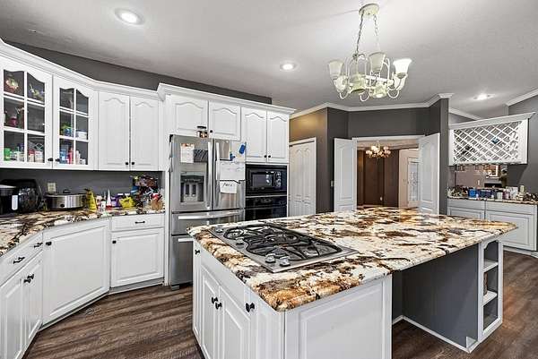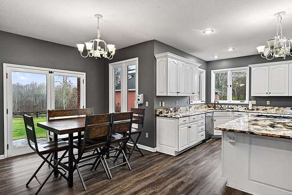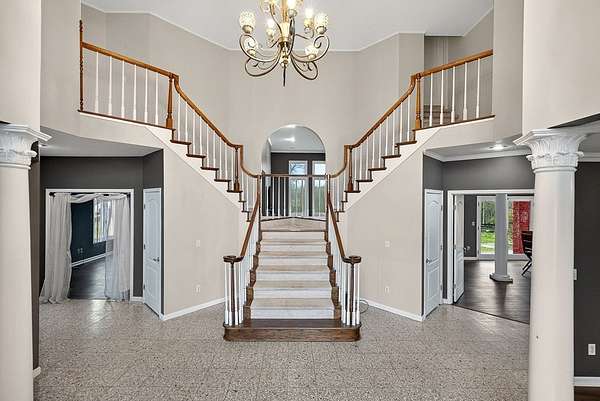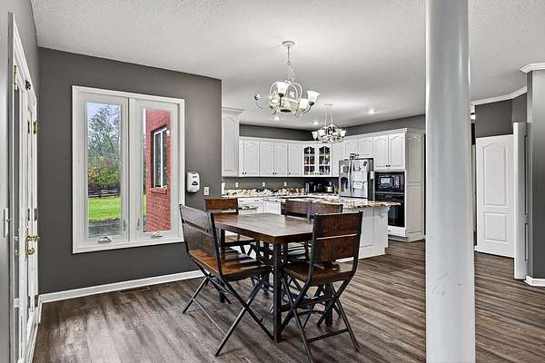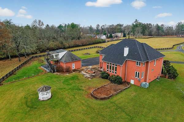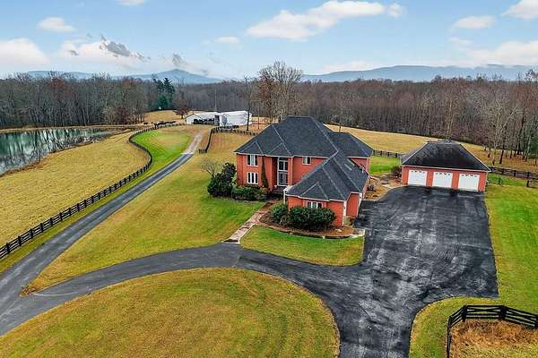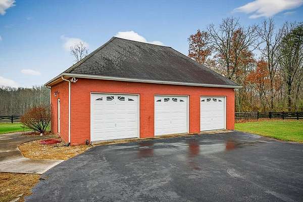 Welcome to 4285 Highway 127 S-an exceptional 5-bedroom, 3 bath brick home offering 3,856 sq ft of comfortable living space and an impressive list of features, all set on 24.5 beautiful acres in Crossville, TN. Enter through an impressive foyer featuring a chandelier and a grand curved staircase with a dual-flight design, setting the tone for the craftsmanship and elegance found throughout the home. The main level also features an open floor plan with LVP flooring in the living room, dining room, kitchen, and bathrooms, providing both style and durability. The main home includes a 3-car attached garage, while the property also boasts a 3-car detached garage with living quarters in need of renovation which could be ideal for guests, extended family, or rental potential. Outdoors, the possibilities are endless with two serene ponds, an equipment shed, and a livestock barn, making this property perfect for hobby farming, horses, or anyone seeking a self-sustaining lifestyle.