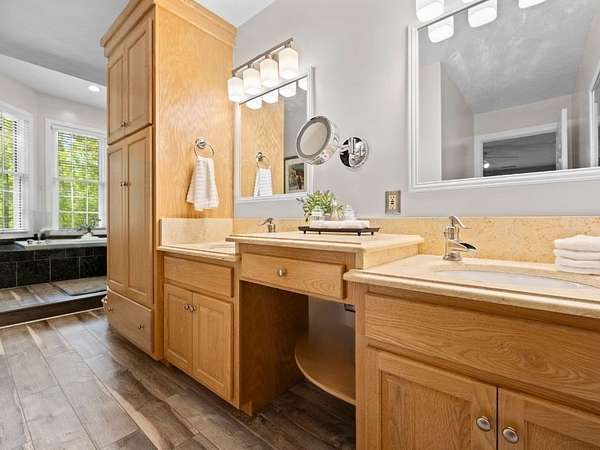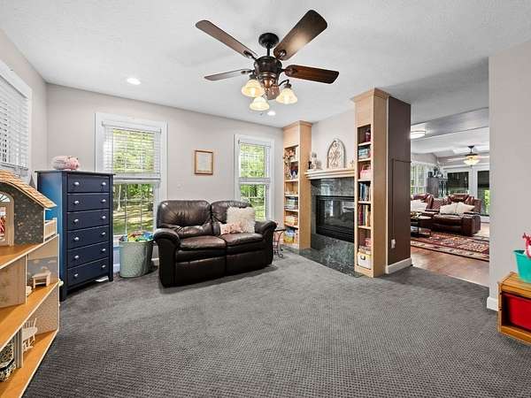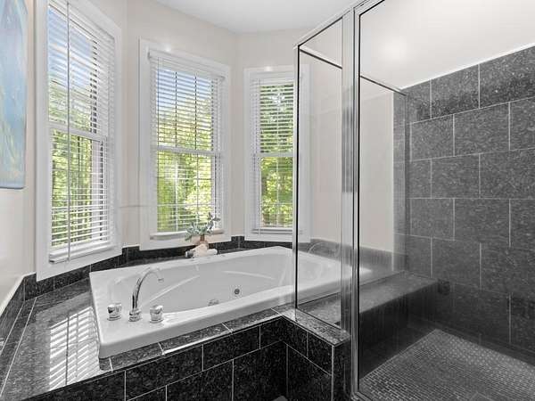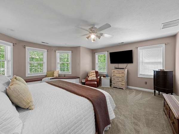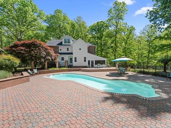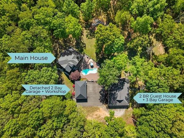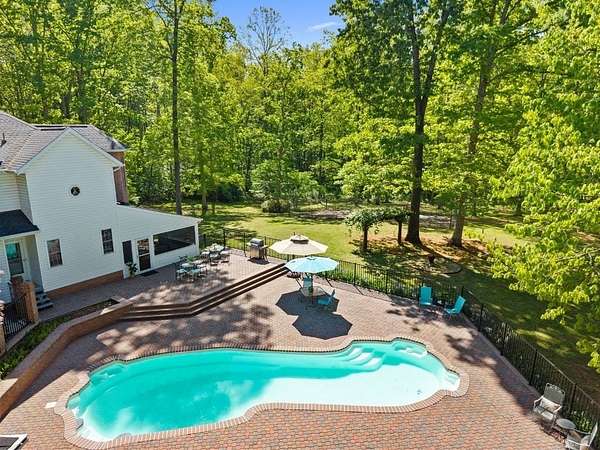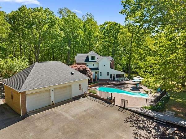 Rare offering in Powhatan. This brick residence offers over 3,300 sqft with 5 bedrooms and 3 baths, plus a third-floor walk-up—perfect for a recreation space or additional storage. Family room and formal living room connected by a shared fireplace, along with an additional sitting area for flexibility. A main-level room with a newly renovated en-suite bath is currently used as an office, offering ideal potential for a guest suite. The kitchen is both functional and inviting, designed for easy flow, and features a charming banquette seating area as well as a separate dining space for hosting. Just beyond, a screened porch overlooks the expansive patio and pool—creating the perfect indoor-outdoor lifestyle. Upstairs, the spacious primary suite is a true retreat, complete with built-in storage benches, a spa-like bath with soaking tub, walk-in shower, dual vanity, and a generous walk-in closet. 3 additional bedrooms on this level offer ample space and storage. Just steps away across the pool patio, a private 2 BR, 2 bath guest house awaits—complete with its own kitchen, living area, laundry, and an attached three-bay garage. To complete the property, a detached 2-bay garage. Ag Zoned.