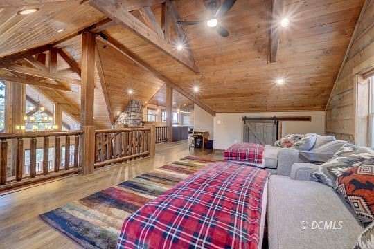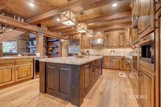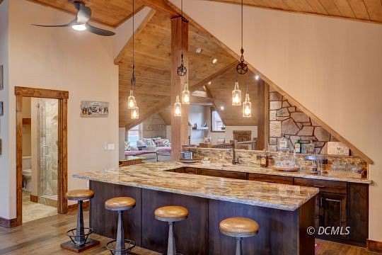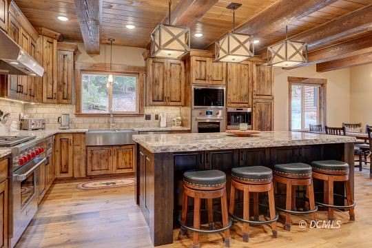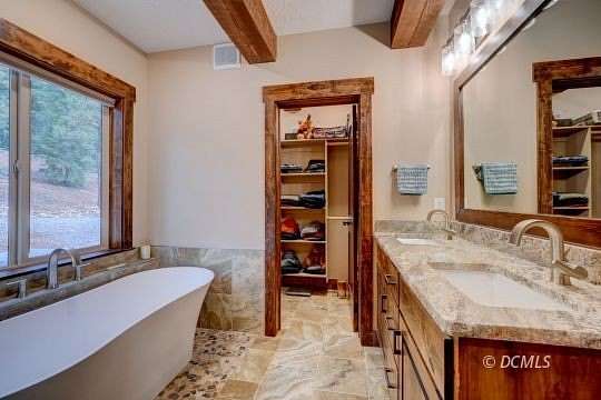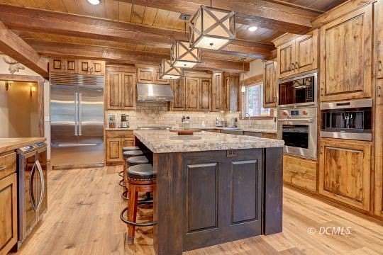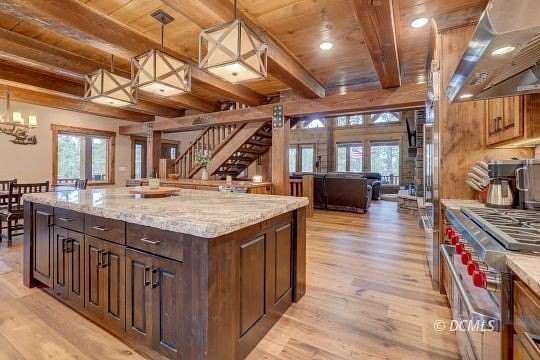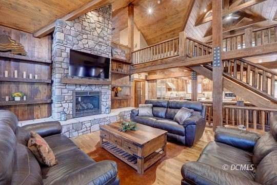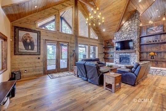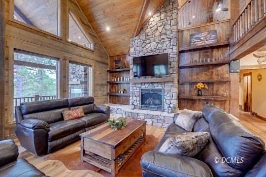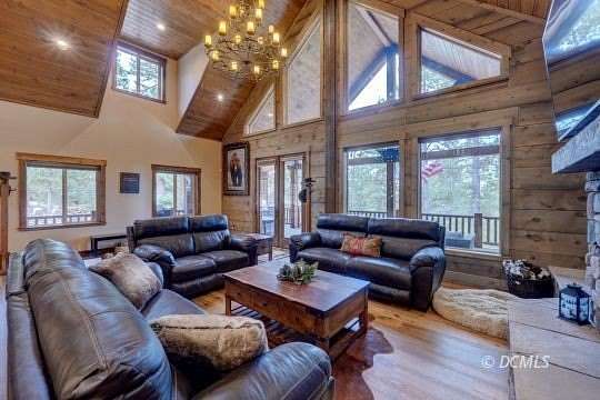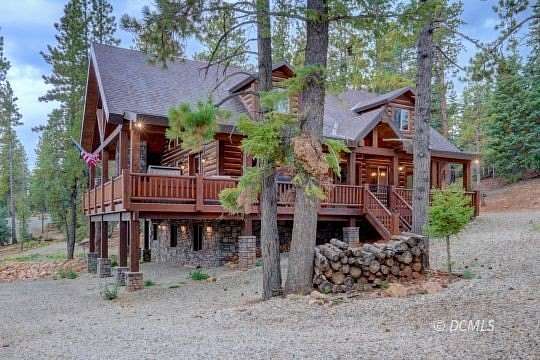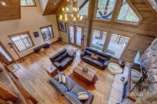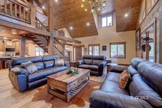 Sitting in the middle of over one and a half acres is a custom mountain home ready for new owners. This Whisper Creek Cabin will delight the entire family. Every cook will be entranced by the upgraded kitchen. From the Wolf appliances to the farm sink, the endless countertops providing prep space as well as entertaining areas, this kitchen has it all. Beverage refrigerators keep drinks cold and the subzero refrigerator free for storing meals waiting to happen. The kitchen, dining and living areas flow seamlessly. The primary suite, laundry, guest bedroom and custom bath also are located on the main floor. The open staircase adds beauty to the room as well as flowing to the open loft gaming and lounging areas. Meanwhile on the lower level, there is another gathering area, bunk room, two additional bedrooms, a half bath as well as a lovely tiled shower bath. An attached 2 car garage is also located on the lower level. The grounds feature a large fire-pit area, circular drive with lots of parking options. A 6 car detached garage with 10 foot doors has plenty of room for all of your mountain toys. The finishes of this home are absolutely stunning! Call to schedule an appointment today.