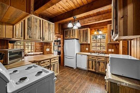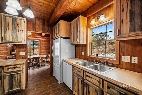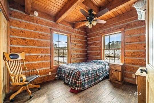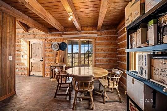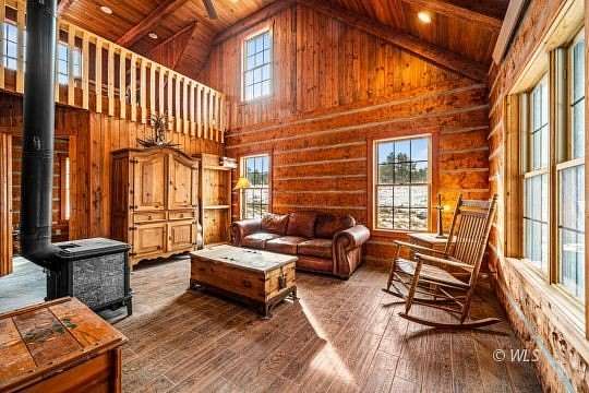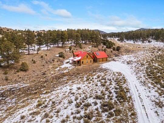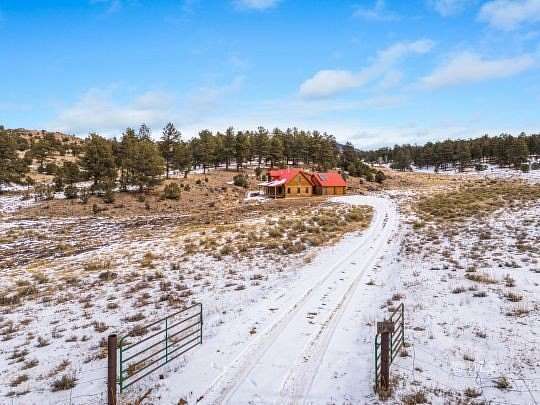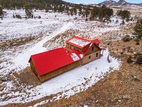 There's a different kind of stillness that lives here. Not empty, but full. Full of breath, grounding, and the kind of peace that lets your shoulders drop. Set on 56.5 fully fenced acres, this handcrafted log home offers privacy, freedom, and wide-open land that feels held, not overwhelming. Built in 2017, the home features 2 bedrooms, 1 full bath, 1 three-quarter bath, and main-floor laundry, wrapped in warm natural wood and soft mountain light. Cathedral ceilings create an open feel, while the clawfoot soaking tub turns everyday living into ritual. The kitchen is finished with live-edge hardwood countertops and all-wood cabinetry. Comfort comes from a Hearthstone soapstone wood stove, radiant electric heat panels, and a 105-gallon solar thermal hot water system. A light-filled sunroom connects the home to the oversized detached two-car garage, creating a breezeway that feels both practical and peaceful. Storage includes a garage loft and large crawlspace. Outside, rolling meadows and mature pines offer end-of-road privacy, no HOA, and access to Colorado's Dark Skies. This isn't a home that shouts.It hums.