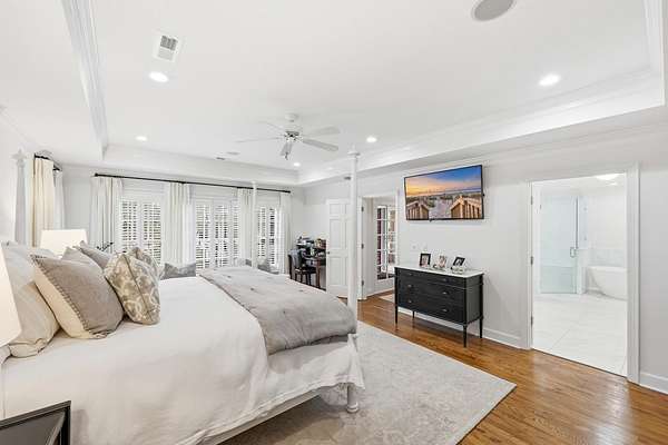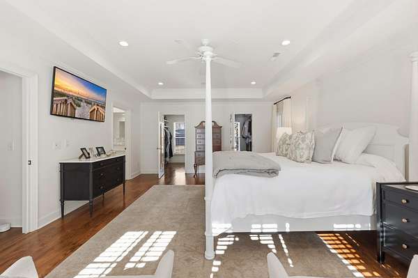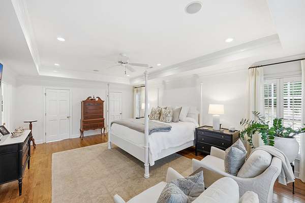 Welcome to this immaculate custom home nestled on 1.99 acres in the sought-after Fox Bay area, where Southern charm meets thoughtful design. Built with exceptional attention to detail and character, this home offers a rare combination of elegance, comfort, and versatility. Designed with two master suites, the home is ideal for multi-generational living, providing privacy, comfort, and independence for two households under one roof. The owner’s master suite is a true retreat, filled with abundant natural light from beautiful windows throughout. The suite features separate his-and-hers oversized walk-in custom closets and a stunning adjoining bathroom complete with a custom oversized walk-in shower with seating and a freestanding soaking tub, perfect for relaxing at the end of the day. The second master suite, located on the opposite end of the home with its own private entrance, offers added privacy and flexibility. This spacious suite includes a large seating area, full-size bathroom, and a generous walk-in closet, making it ideal for aging parents, returning adult children, or long-term guests. The main living area features an open and welcoming layout that flows seamlessly into the newly updated custom kitchen, creating the perfect space for both everyday living and entertaining. Large windows fill the space with natural light, enhancing the bright and airy feel of the home. The kitchen offers extensive cabinet storage along with a convenient walk-in pantry for additional organization. Step outside to the inviting back porch and outdoor living area, located just off the main family room. This space is perfect for relaxing or entertaining and features ample seating areas along with a pergola that provides comfortable partial shade. The private backyard, beautifully landscaped with mature trees surrounding the property, offers plenty of room to add your dream swimming pool. As an added bonus, the property includes a 780-square-foot outbuilding, with half of the space heated and cooled, making it ideal for a bonus room, workshop, pool house, or even potential rental space. With endless possibilities and exceptional features throughout, this property truly offers the best of space, privacy, and Southern living.