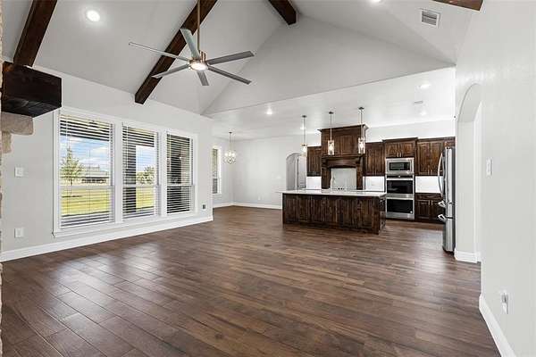 - Built-In Features, Cable TV Available, Cathedral Ceiling(s), Decorative Lighting, Eat-In Kitchen, Granite Counters, High Speed Internet Available, Kitchen Island, Open Floorplan, Pantry, Vaulted Ceiling(s), Walk-In Closet(s)