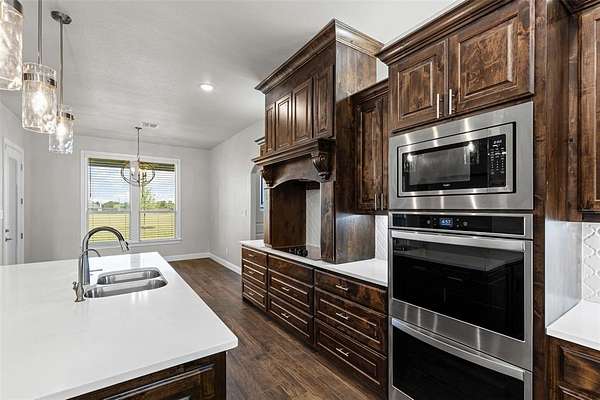 Welcome home to this beautiful property on 2 acres in a gated and quiet community that is just minutes away from restaurants and shopping yet feels far enough away from the busy city. This home is filled with beautiful custom accents such as, nickel hardware, extra storage spaces, built-in cabinetry, upgraded lighting, and Gorgeous Quartz countertops. Interior features include, a media room, walk-in showers, built-in hall cabinetry, large walk-in pantry, over and under-cabinet lighting, timer operated outdoor lighting, brick paved patios, and a large storage room with built-in shelving located in the garage. 3-car garage with 10-foot ceilings to accommodate your larger equipment. Gigabit Ethernet installed for higher speed and performance. Exquisite entry with 9-foot door equipped with security cameras. Reverse osmosis system installed, large walk-in attic for even more storage, 2 water heaters and a water softener are just a few more additions to this must-see property! This home is filled with endless possibilities and has the outdoor space for a pool, shop or your dream outdoor kitchen.