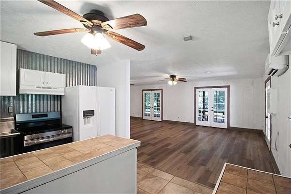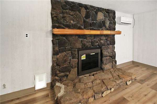 Inside, you'll find a thoughtfully updated home with a newly finished kitchen, bathroom, and floors throughout. The kitchen boasts an industrial-sized sink ready for any need, while the bathroom offers dual shower heads for a spa-like feel. A cozy stone fireplace anchors the living room--perfect for sipping coffee on a crisp morning--and French doors open onto a screened-in porch for an airy, open flow.
