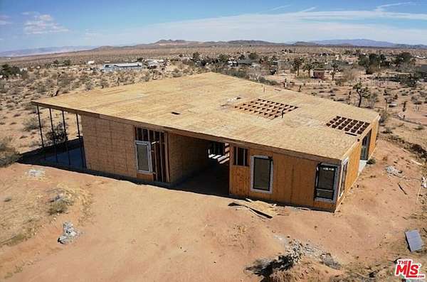 Pre-sale opportunity with an expected completion date of Winter 2026. Experience the perfect blend of modern luxury and desert serenity just minutes from the breathtaking landscapes of Joshua Tree National Park. This stunning new home with a detached ADU sits on 2.3 expansive acres, offering uninterrupted panoramic views of the peaceful surroundings, including head-on views of Goat Mountain. The property features a main residence with two bedrooms and two bathrooms, designed for seamless indoor-outdoor living. Soaring 16-foot ceilings and floor-to-ceiling glass walls create an airy, open atmosphere that brings the beauty of the desert inside. The sleek chef's kitchen boasts premium oak cabinetry and Caesarstone countertops, offering both style and functionality. A 700 sq. ft. detached ADU provides additional living space, perfect for guests, a home office, or an income-generating rental. A breezeway carport elegantly connects the two structures, offering shaded parking and architectural cohesion. Step outside and unwind in your private oasis, complete with a sparkling pool, a soothing spa, and a cozy fire pit perfect for stargazing and peaceful desert nights. Located close to La Copine, Pappy & Harriet's, and top off-road adventure spots, including Sand to Snow National Monument and King of the Hammers, this home offers a prime location for both relaxation and recreation. Don't miss this exclusive pre-sale opportunity to own a one-of-a-kind desert retreat this property also qualifies for Opportunity Zone benefits.