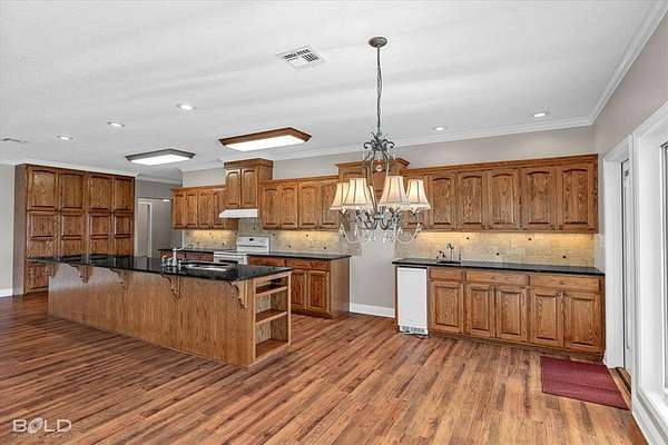 - Built-In Features, Chandelier, Eat-In Kitchen, Granite Counters, Kitchen Island, Open Floorplan, Pantry, Vaulted Ceiling(s), Walk-In Closet(s)