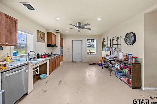 Escape to the peace and quiet of East Texas with this beautiful 94.7-acre property in Big Sandy. This unique property features a 40x60 shop with comfortable living quarters, including 1 bedroom and 2 bathrooms, making it perfect for a weekend getaway, hunting camp, or full-time rural living. The shop also includes a 20x40 covered lean-to and a 30x30 carport, providing plenty of space for equipment, vehicles, or recreational toys. The land itself is a perfect mix of open pasture and mature timber, with approximately 25 acres of pasture ideal for livestock or hay production, and the remaining acreage in mixed woods that offer great habitat for wildlife. A beautiful 1.5-acre pond sits on the property and is perfect for fishing, watering livestock, or enjoying the outdoors. Whether you're looking for a working property, recreational retreat, or peaceful country escape, this one offers the space, privacy, and natural beauty that makes East Texas living so special.