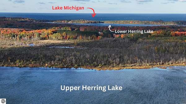 This home is perfectly located for every Northern Michigan adventure and must be visited to truly appreciate! With a beautiful 3-season view of Upper Herring Lake, this 3 bed/2 bath quaint ranch with nearly SIX acres (after utility easements are considered) is ready for new owners to make their own and is just minutes from downtown Frankfort, Elberta, and Lake Michigan. The property is home to a variety of trees that help ensure privacy even during the winter months. Remove some of those trees and gain a fuller view of the lake during summer months. Three bedrooms and one bath transition into the main-level living room and dining room that offer that beautiful view of Upper Herring Lake. The cozy downstairs family room provides a space to relax, while the kitchenette and workshop room are ready to be finished and used for a variety of projects. The lower level bathroom has potential to be expanded/renovated. The lower level also has plenty of storage room and a wood boiler that can be utilized for back-up heating. The large detached 2-car garage provides storage for all of the "Up North" necessities. Enjoy looking out at Upper Herring Lake while sipping a cup of coffee, eating lunch, or reading a book. Take a short jaunt down the road to the public boat launch to launch your boat or go fishing or hike the trail at the nearby nature preserve. Enjoy a tubing voyage down the nearby Platte River soaking up the sun while leisurely floating to Lake Michigan. Plan a day visiting Frankfort, Beulah, Crystal Mountain, or one of many public beaches on Lake Michigan, Crystal Lake, or one of the many other smaller lakes.