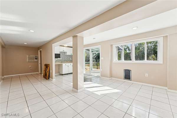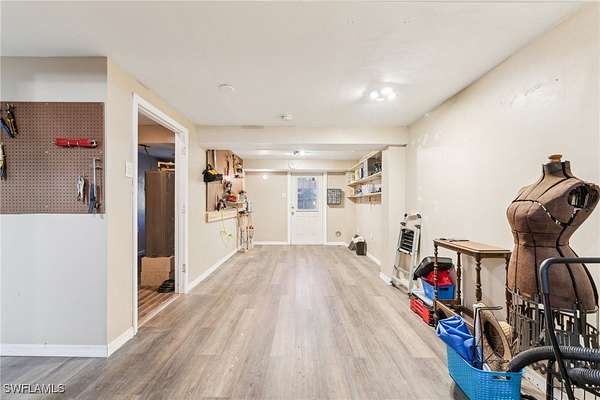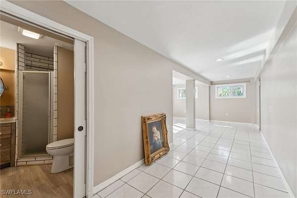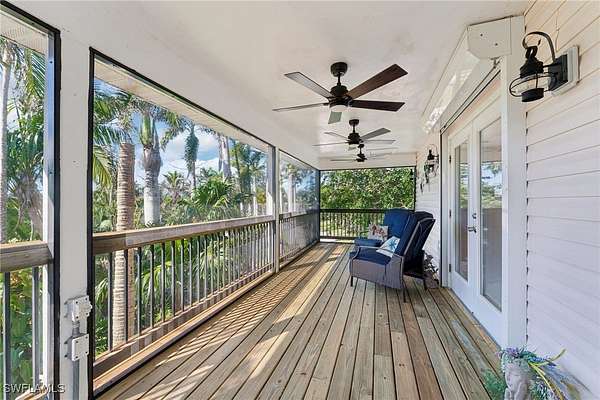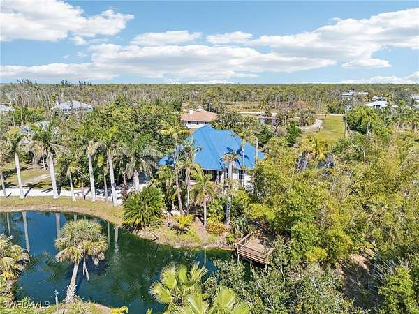 Discover your own private slice of paradise with this one-of-a-kind, 3-level Florida retreat situated on over 2 acres of lush, tropical landscape with serene pond views. This unique 3-bedroom, 3.5-bath residence offers the perfect blend of charm, comfort, and functionality. Recent upgrades include a brand-new dock installed in 2024, a screened saltwater pool with paver deck added in 2023, and both electric and manual storm shutters installed in 2019. The main level features a spacious living room with vaulted ceilings, a bright dining area with French doors opening to the screened back porch, and a beautifully appointed kitchen with white glass-front cabinetry and granite countertops. The primary suite is conveniently located on the main floor and includes French doors to the screened front porch, a luxurious ensuite bath with a large double shower, dual sinks, walk-in closet, private laundry, and access to the back porch. Upstairs, an open loft leads to two additional bedrooms and a full bath. The finished lower level offers a flexible living space with a full bath and kitchenette-perfect for guests, in-laws, or rental potential-as well as a large workshop and extra storage. Enjoy peace of mind with a combination of both electric and manual shutters. Outdoors, enjoy multiple screened porches, two fenced dog areas, and plenty of room to relax or entertain. Whether you're lounging by the pool, casting a line from your dock, or enjoying the peaceful natural setting, this home invites you to experience the very best of Florida living.