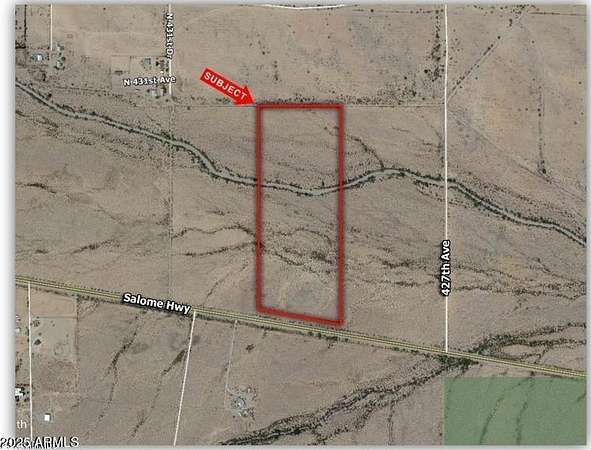 38 Acres with Salome Hwy frontage Direct path of future growth - strong long-term investment potential Paved road access for easy entry and development flexibility Wash on property adds natural desert character (buyer to perform due diligence) Open desert setting with incredible views and wide-open skies. Wash on property adds natural desert character (buyer to perform due diligence) This acreage combines visibility, access, and investment potential. Its proximity to a major freeway interchange makes it ideal for a wide range of future uses-whether held for appreciation or developed into something more.