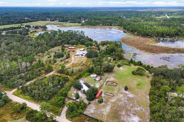 Discover the potential of this 2.94-acre waterfront property on Buck's Lake. A gated private entrance leads to the home, set on high and dry land with beautiful lake views and a peaceful natural setting.