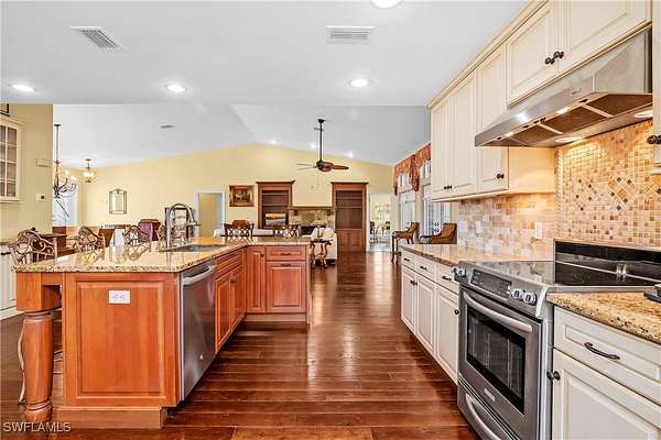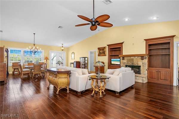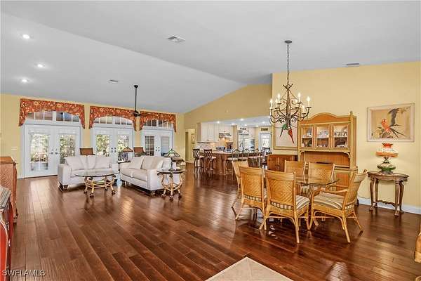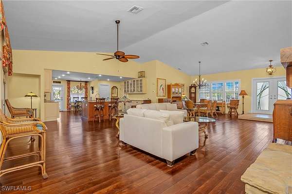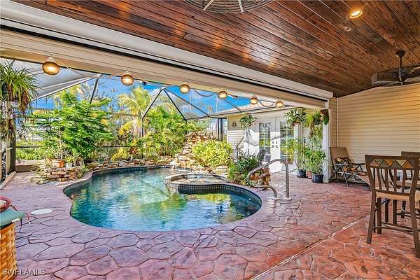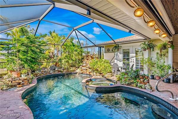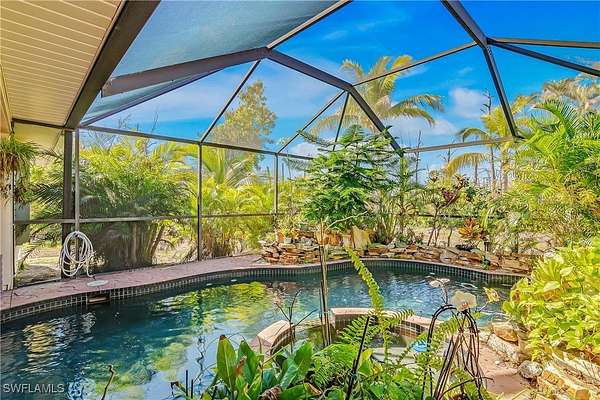 Your Tropical Escape Awaits! Welcome to Pine Island, where Old Florida charm meets modern luxury-just 30 minutes from Fort Myers. Nestled on 2.5 lush acres of palms and verdant foliage, this Key West-style retreat offers tranquility and convenience. The 3-bedroom, 2-bathroom home features a bonus den, gleaming hardwood floors, vaulted ceilings, and a bright, open layout perfect for entertaining. French doors lead to your private oasis with a screened pool, hot tub, and waterfall, all set amid lush greenery. The chef's kitchen boasts granite countertops, stainless steel appliances, and a central island, complemented by a formal dining room and cozy breakfast nook. The primary suite offers hardwood floors, a walk-in closet, and a spa-like bath with dual vanities and a jetted tub. Recent upgrades include a 2024-new roof, A/C system, and dishwasher, plus a whole-house generator with a 500-gallon propane tank installed in 2019. Outdoors, enjoy a serene private pond and botanical-like grounds. Pine Island blends small fishing village charm with easy access to world-class amenities. Whether you're seeking a full-time home, seasonal retreat, or income-producing property, this is your chance to live the island dream. Schedule a private tour today.