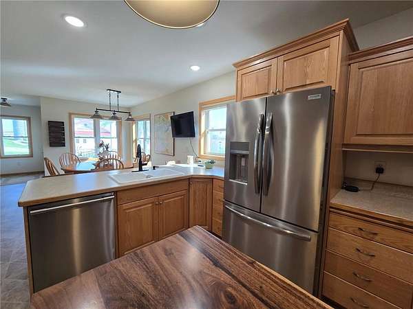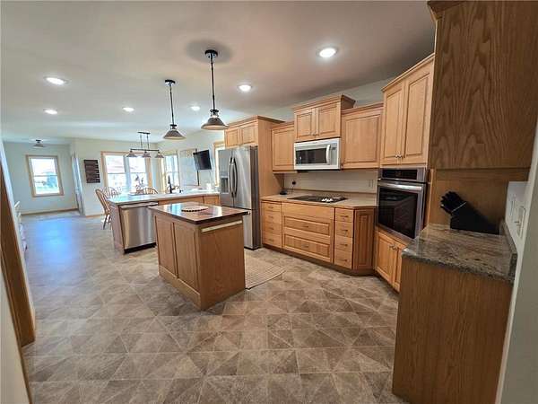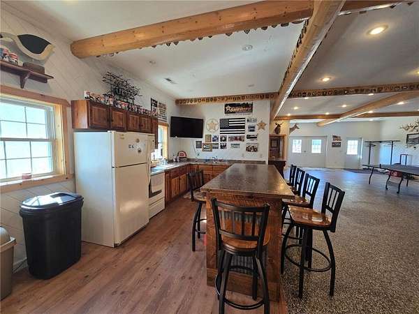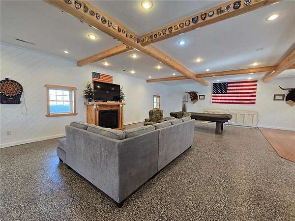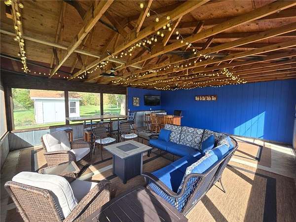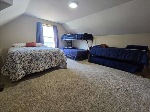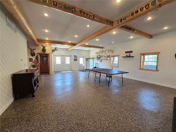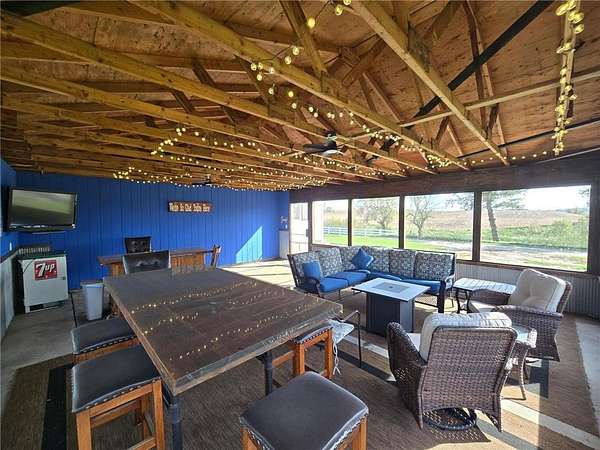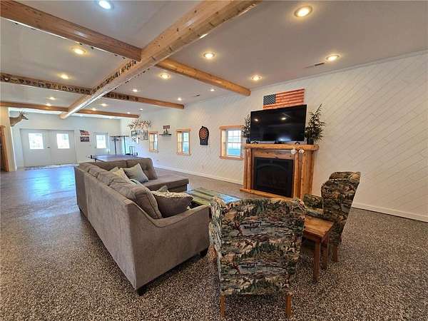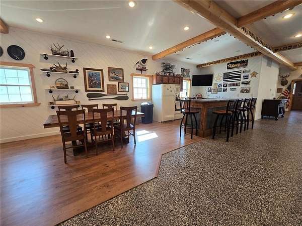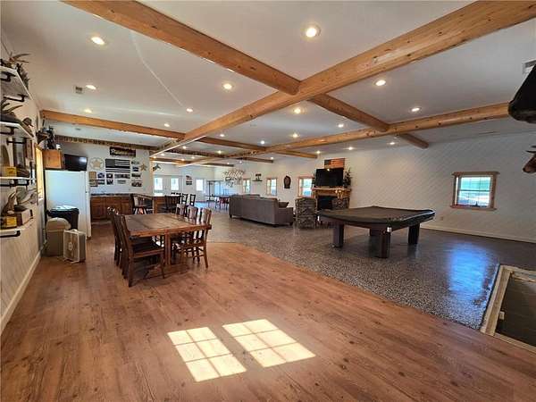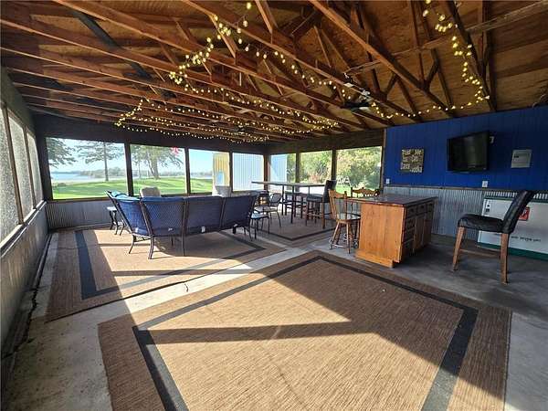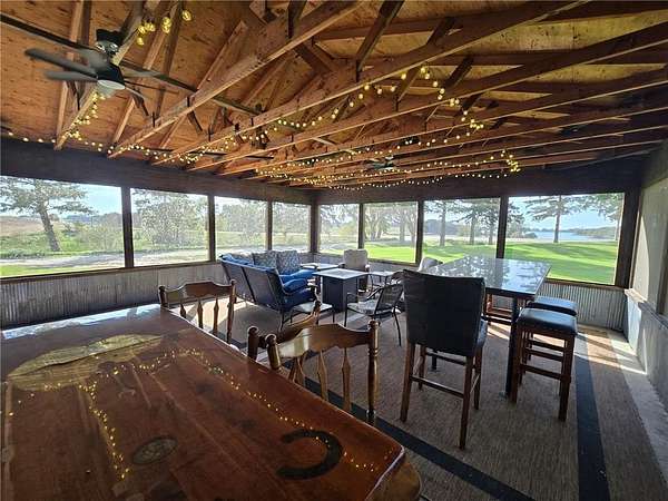 This property is perfect for hosting gatherings and creating unforgettable memories. The Party Barn, built in 2006 and refreshed in 2023, is a 32x62 space designed for fun and relaxation. It features His & Hers bathrooms, a shower room, a full kitchen, a pool table, and a cozy fireplace. You can also unwind in the serene three-season screen porch while taking in breathtaking views of Red Rock Lake, especially at sunset.