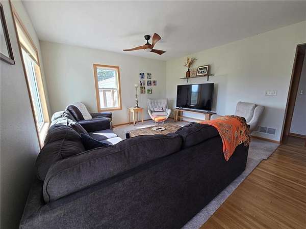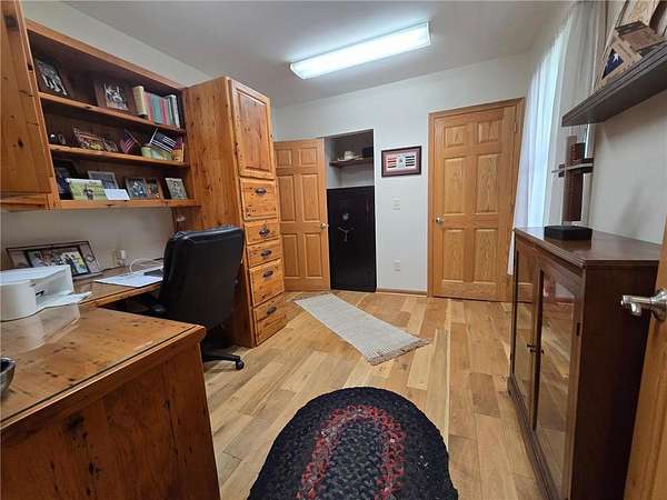 Originally remodeled to its studs in 2007, the farmhouse has undergone thoughtful updates over the past two years, ensuring modern comforts while preserving its classic charm. The heart of the home is its spacious kitchen, which boasts an island, custom cabinets, under-counter lighting, and an in-room dining area that enhances both functionality and style. On the main floor, enjoy the convenience of one-level living with a bedroom, a large laundry room, and a dedicated office space. Venture upstairs to discover three additional bedrooms, a 3/4 bathroom, a massive storage room, and plenty of closets to meet all your storage needs.