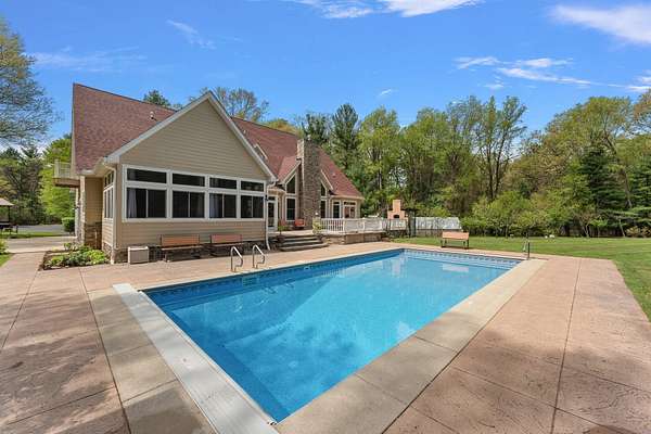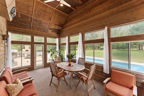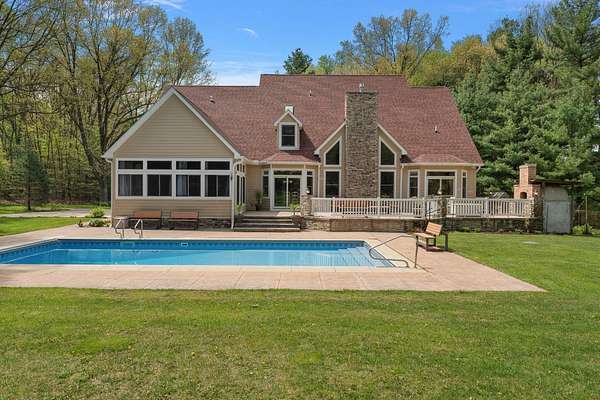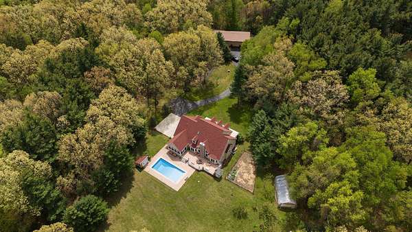 Discover this one-of-a-kind home, nestled on a 16-acre wooded estate in La Porte! A private, tree-lined driveway leads to this serene retreat, surrounded by beautifully landscaped grounds and natural beauty.Step inside to soaring ceilings, expansive windows, and thoughtfully selected finishes that fill each room with light and character. But the charm of this property doesn't stop there - it extends into the many unique features that make it truly special.Notable features include: a heated in-ground pool surrounded by nature; a wraparound front porch; a backyard patio with a built-in gas grill and wood-burning oven; a massive pole barn with heating and cooling; trails, open lawn areas, and wooded surroundings ideal for outdoor activities; a heated greenhouse for year-round gardening and sustainability; a diverse array of plants, fruit trees, vegetables, and colorful blooms; a 3.5-car garage with direct access to the basement; a main-floor primary suite; three spacious bedrooms upstairs; a full basement complete with a kitchenette; a basement bonus room (potential 5th bedroom); a reinforced basement safe room; a studio loft with tall ceilings, its own private bath, balcony, and climate control; a sunroom with vaulted ceilings; a dedicated home office - and so much more.Conveniently located near restaurants, shopping, major roadways, and 5 minutes from Pine Lake. Whether you're seeking a peaceful retreat, space to grow and create, or the ultimate entertaining haven, this extraordinary property delivers!
