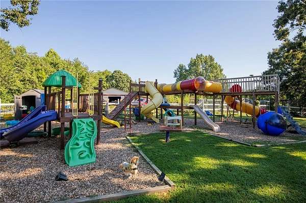 Welcome to your dream retreat--nestled behind trees on 5 private acres. This stunning property offers space & family-friendly amenities, outside city limits but minutes from town. Outside, you will enjoy access to a fully stocked 7-acre lake, shared with only 3 neighboring properties-ideal for fishing or relaxing. The backyard features a semi-inground pool & splash pad, hot tub, outdoor movie screen, & a massive custom playground complete with forts, tunnels, slides, & swings. A 40' x 44' barn with lean-to offers ideal storage or workspace. Inside this rustic home is a large kitchen, dining, & hearth room with a wood burning stove featuring beautiful hardwood floors & a tongue & groove ceiling. With 4 large bedrooms, a bonus room (could be a 5th), & a dedicated office, this home has lots of space. Designed with storage in mind, it offers plenty of closet space, a large laundry/mud room, & a roomy closet in the living room that leads to a storm cellar. An additional 5 acres also available for purchase.