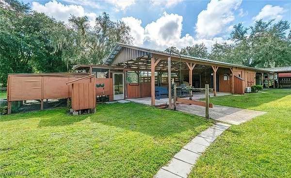 Located in Bushnell FL, nestled just south of the World Equestrian Center in Ocala, North of Tampa and west of Orlando, this beautiful 6.7 acre horse farm offers the perfect blend of rustic charm and modern comfort. Tucked away in a secluded, tree-lined setting, this high-and-dry property is not in a flood zone and is ideal for those seeking peace, privacy, and a true florida country lifestyle. Home was recently stained with a fresh coat to last several years to come in July 2025 The main home is a lovingly crafted log cabin on the outside, with the warm, cozy feel of a true comfort home on the inside. Built and cared for by its current owners for many years, the home features 3 bedrooms, 2 bathrooms, and an open welcoming layout perfect for family life and entertaining. Equestrians and homesteaders alike will appreciate the thoughtful layout of the land: several horse stalls, a chicken run, and a large RV/hay/horse trailer hangar provide all the space and functionality you need. An additional ranch hand house or guest quarters, along with a shed for extra storage, round out this turnkey farm. Whether you are looking to raise animals, ride, or simply enjoy the serenity of nature, this property offers it all. Now ready for the next chapter? This much loved home is waiting for someone new to make it theirs. Call today for your private showing of this peaceful, private, piece of paradise!