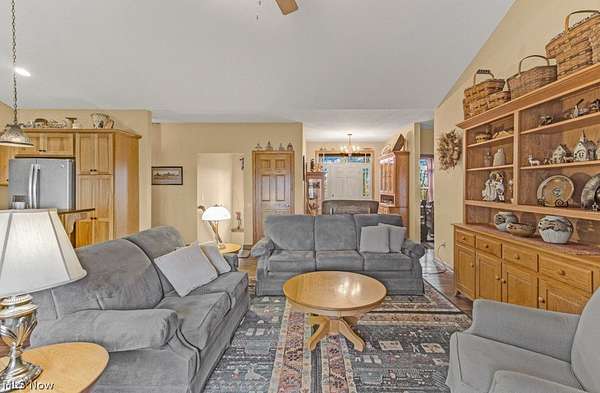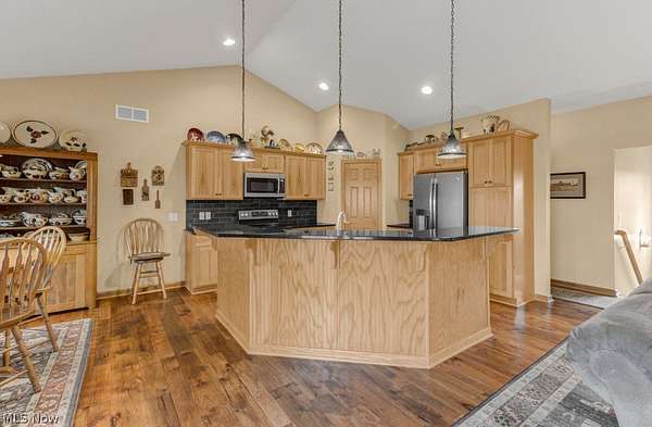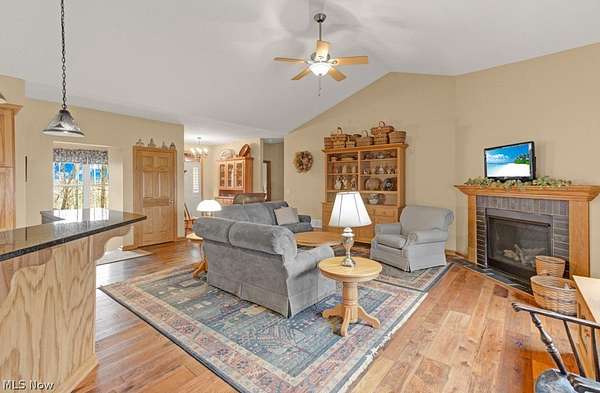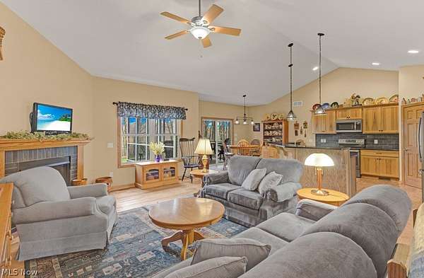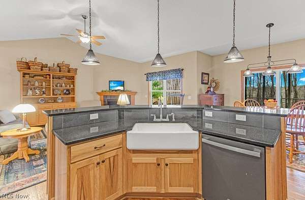Welcome to peaceful country living in this beautifully crafted custom ranch by Starting Line Homes, perfectly situated on 5.63 scenic acres! Step inside to a welcoming entry/mudroom from the garage with convenient laundry space, designed for everyday living. The home showcases quality craftsmanship throughout with solid wood doors, 9-foot ceilings, and engineered wood flooring. The main living area features soaring cathedral ceilings and a cozy gas fireplace, creating the perfect place to gather and relax. The open-concept kitchen shines with a farmhouse sink, hickory soft-close cabinets, pantry, granite countertops, and a newer dishwasher (2025)-ideal for cooking and entertaining. Just off the living area, enjoy a screened-in porch and composite deck, perfect for morning coffee, relaxing evenings, and taking in the peaceful country views. The primary ensuite offers a private retreat with walk-in closets, double sinks, granite counters, a soaking tub, and walk-in shower. Two additional bedrooms and a full bath are thoughtfully located on the opposite wing of the home, providing privacy for family or guests. The lower level adds even more flexibility with 9-foot ceilings, a full bathroom, and additional living space. Access the basement from two convenient entries-one inside the home and another directly from the garage. The space also includes a workshop area with cabinets (all convey except those under the middle table), utility sink, and plenty of storage. The home is wired for a whole-house generator, features a sediment filter on the well, and the well is approximately 479 feet deep. The furnace was updated in 2026. Step outside to enjoy the fenced backyard area, shed, and firepit-perfect for gatherings under the stars. All power lines are underground, preserving the beautiful open views across the property. If you're looking for acreage, quality craftsmanship, thoughtful design, and space to live, work, and relax, this property is for you.