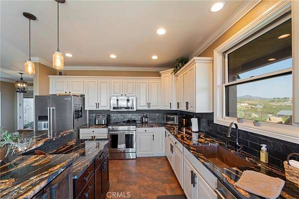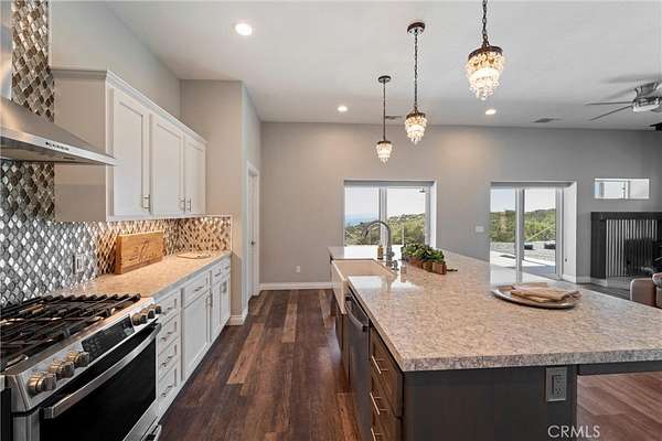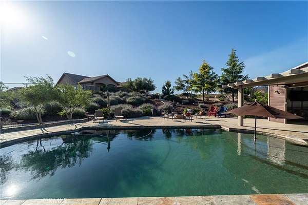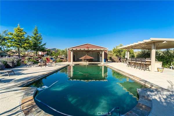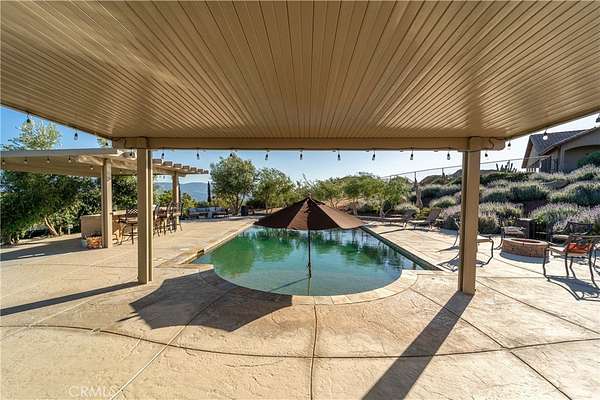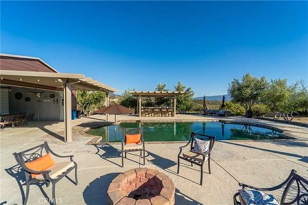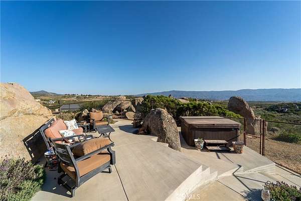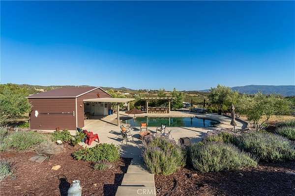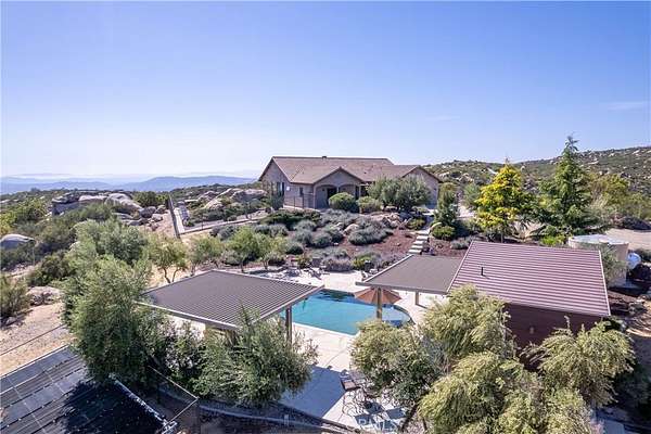Two custom homes- (GUEST HOUSE) on 19.97 acre lot in Aguanga! Great access/location close to highway 371. Both homes have FULLY upgraded finishes throughout! 2 workshops one for each home plus standard garage on main home. For entertaining you will love the inground pebble tech pool and pool house with bathroom and built in BBQ area. This property is surrounded by county preserve on 3 sides for immense privacy. The main home has 3 bedrooms and 3 bathrooms with an elevated location to best enjoy the gorgeous views of mountains, sunsets, valley, lake, and city lights. Large great room concept with fireplace in the living room. There are 2 master suites, tile floors throughout the home, Anderson doors and windows (triple pane windows). Kitchen has Kraft Maid custom cabinetry, beautiful granite countertops with backsplash. Outside there is a wrap around porch along with patio's, Jacuzzi, 2 firepits. Tasteful and professionally maintained landscaping awaits you outside and around the pool area. There is a 2 car garage and 1500 SF workshop. There is fencing and multiple cross fencing around the improved areas of this property, the entry has automatic gates one for each home. The guest home/ ADU is a distance from main home and approx. 1500 SF with 2 bedrooms and 2 bathrooms, open great room with beautiful upgraded kitchen, wood stove in living room. This home has vinyl flooring, quartz countertops including an enormous island in the kitchen, fully upgraded bathrooms. There is a 4 car garage/workshop with second home, outdoor alumawood covered patio and RV hookups. The pool area is absolutely spectacular with lots of cement patio space, landscaping and a wonderful pool house with bathroom and alumawood covered patio plus a separate covered BBQ area, solar heating, salt water pool. There is also a 24 KW automated back up generator, gravel driveway. Too many upgrades to list contact agent for a full list. This is an amazing property waiting for its new owner to arrive to vie