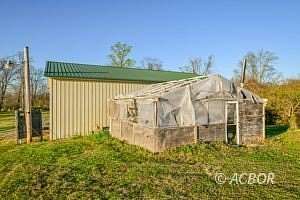 - Covered Porch, Deck(s), Garden Area, Gutters & Downspouts, Pole Barn/ Building, Trees
