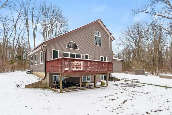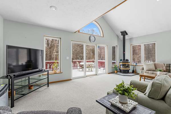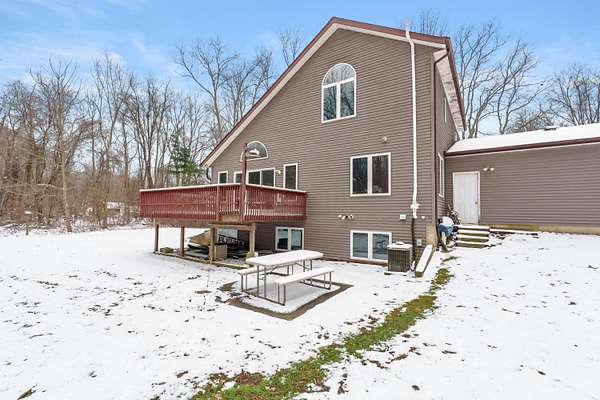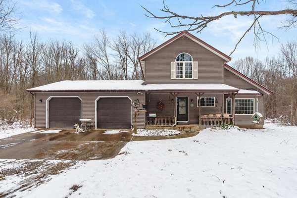 Offered for the first time, this custom built, one owner home is a rare opportunity to own a private retreat on over 4.7 acres adjacent to Michigan Land Conservancy. Enjoy peaceful surroundings and abundant wildlife right from your back deck with low-maintenance composite base decking. Inside, the open-concept design features vaulted ceilings, a cozy gas fireplace and wall of windows with slider to the deck creating a bright and inviting living space. The main floor bedroom adds convenience, while upstairs offers two additional bedrooms, one with a walk-in closet and Jack and Jill bath. The lower level is ready for your finishing touches with daylight windows, offering great potential for additional bedroom or living. Extra features include a full house generator, electric in place for a hot tub, and a 32x32 heated pole building with cement floor and 10' overhead door. New roofs on both the home and barn were completed in fall 2025, adding peace of mind to this truly special property.