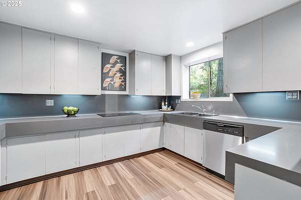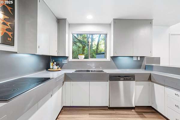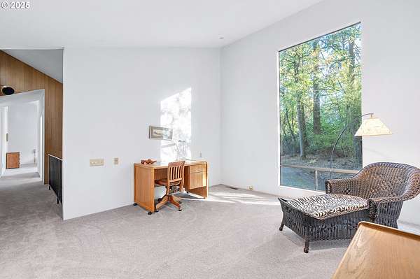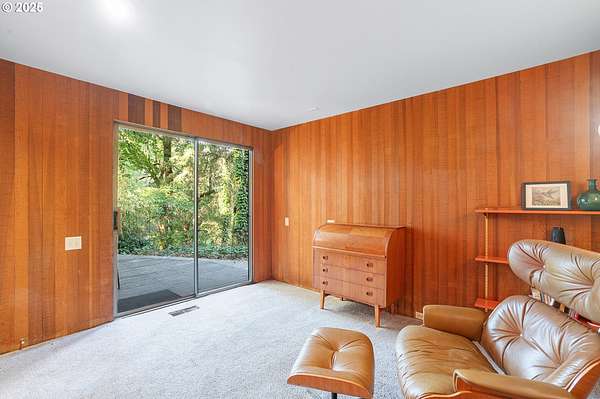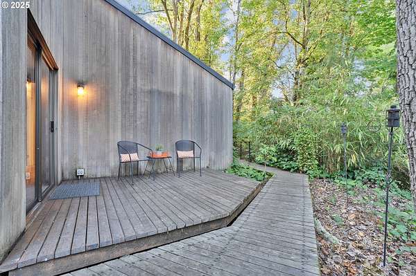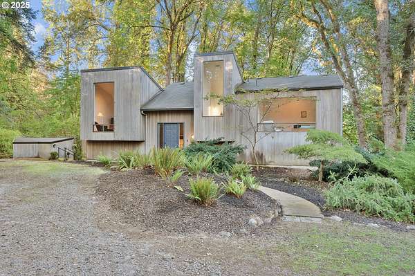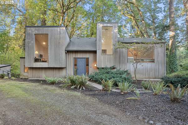 Tucked away on nearly 2 acres in the treetops of Salem, this 1973 Frank Lloyd Wright-inspired prairie gem is where architectural charm meets modern flair. With 3 bedrooms, 2 baths and a nice flexible space that makes a perfect office or family room, this home is a hidden haven minutes from Illahe Golf & Country Club. Meander up the private drive and discover sweeping eaves, low-slung lines, and walls that whisper mid-century secrets. Inside you'll find new 2024 vinyl plank floors that lay the foundation for your next chapter, while the brand-new stainless steel oven and dishwasher gleam. Sunlight beams through generous windows, spotlighting the cozy, grounded elegance only a Wright-style home can deliver. Upon entering you are greeted by the stunning living room with a swanky fireplace at the center. Whether you're sipping coffee on the deck or plotting your short game over breakfast, this secluded sanctuary offers peace, privacy, and personality in equal measure. Come for the architecture, stay for the serenity - you've found your hideaway.