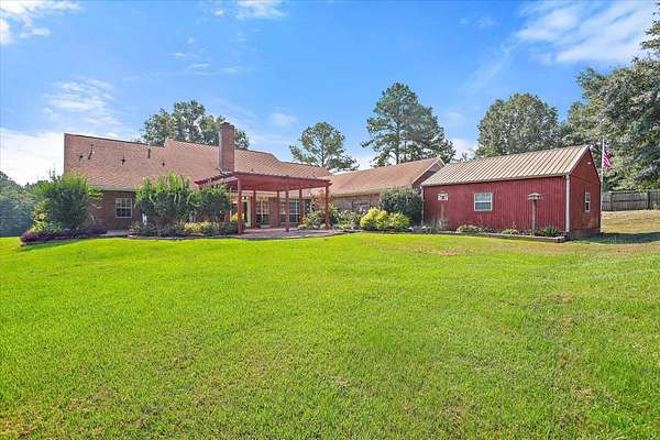 Experience luxurious country living in this like-new 5-bedroom, 4-bathroom home, featuring a versatile bonus room that can be used as a fifth bedroom, situated on 4.21 acres of pristine land. Meticulously maintained, this residence boasts ample storage-including a spacious 30' x 8' walk-up floored attic-and modern upgrades throughout. The spacious interior features a sunroom with double doors, perfect for relaxing or entertaining. The living area offers a cozy gas log fireplace, complemented by a stunning custom windmill ceiling fan. The chef's kitchen is a culinary dream, equipped with a pot filler, a 6-burner gas stove, a double dishwasher, a wine refrigerator, and a double oven-ideal for hosting gatherings. Step outside to your private oasis: a 30' x 30' garden with water irrigation, a charming chicken coop with rainwater harvesting, and mature fruit trees, including a fig, pear, and blueberry bush. The property is ideal for outdoor hobbies, featuring a fully functional workshop, reinforced ramp, roll-up door, large carport for additional storage, and a 52-inch zero-turn riding mower and 15-gallon sprayer, available with an acceptable offer. Security is covered with a comprehensive camera system, which, along with all remaining mounted televisions, will stay. Enjoy the peaceful surroundings at your convenience, knowing that all necessary inspections and repairs are complete, thanks to a recent pre-inspection. This is more than a home-it's a turnkey opportunity to enjoy country living with modern amenities, ample space, and exceptional outdoor features. Don't miss your chance to make this incredible property yours!
