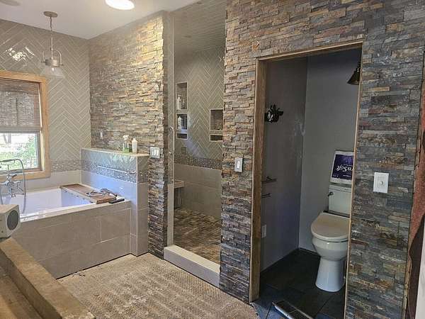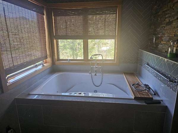 - Built-In Features, Kitchen Island, Linen Closet, Pantry, Primary Downstairs, Soaking Tub, Tile Shower, Vaulted Ceiling(s)