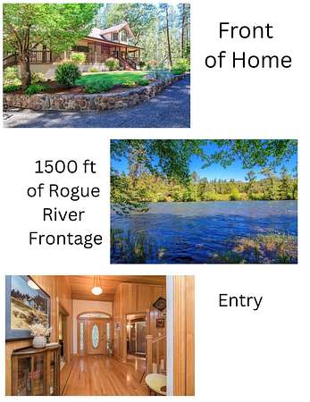 Private. Pristine. Unrepeatable. Over 21 acres with 1500' of Rogue River frontage--your own hidden wilderness sanctuary. Once a manicured showplace (see photos section for photos from previous listing), this rare estate now needs only cosmetic polish--flooring, paint, cabinet repairs, landscaping--to reclaim its glory. Structure & systems are solid and inspected. 2406 sq ft 2-story Craftsman w/mahogany wrap-around porch, soaring ceilings, main-level primary, river-view living room flooded with natural light, chef's kitchen w/custom cabinetry, and loft office/bonus area. Legal guest house, finished garage/shop, abundant water, underground power. Watch elk wander through the evergreens, fish for salmon & steelhead from your private shore, and never see a tourist. Value-priced at $950,000. Possible owner carry terms with qualified buyer.
