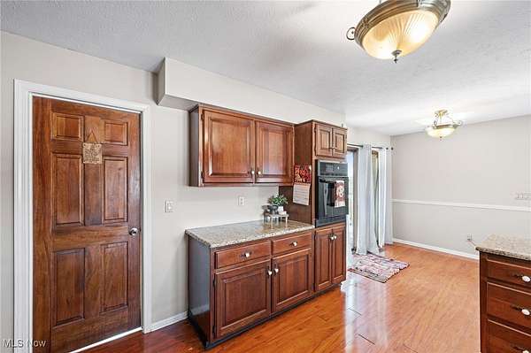 Set on over three serene acres, this walkout ranch in Medina is a home that truly shows the love it holds and is now ready for its next chapter. Thoughtfully cared for, the space unfolds with warmth, intention, and a layout that feels both expansive and deeply livable. As you enter the open foyer, sunlight fills the space and highlights the home's thoughtful layout, creating an immediate feeling of warmth and flow. The main living areas are inviting and comfortable, anchored by hardwood floors and a welcoming fireplace that sets the tone for everyday living and connection. The home offers a spacious eat in kitchen designed for daily life, along with a formal dining room ideal for hosting holidays or intimate dinners. The primary suite serves as a true sanctuary with a full bath and ample closet space, while two additional bedrooms and a full bath on the main level provide flexibility for family, guests, or a home office. The walkout lower level expands the home's versatility with a large recreation room featuring a fireplace and an existing pool table, along with two additional bedrooms, a full bath, a sizeable laundry room, and a large storage room. Outdoor living is just as inviting, from the cozy front porch and garden area to the wrap around second level deck and the patio off the lower level, offering multiple spaces perfect for entertaining or enjoying the peaceful setting. The home has benefited from meaningful improvements over time including professional waterproofing, new gutters, fresh interior and exterior paint, extensive landscaping, a new HVAC system, new AC unit, new hot water tank, new carpet, new basement flooring, a new storm door, a new bathroom vanity, and a roof that is less than ten years old, providing confidence and peace of mind for the next owner. With strong bones, generous space, this home offers the opportunity to personalize and make this house your home.